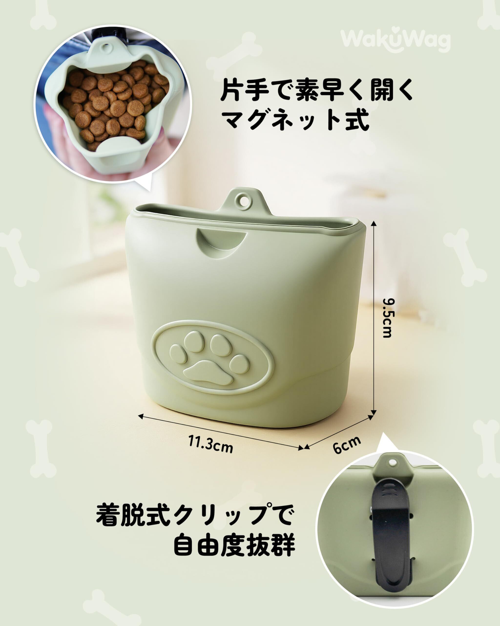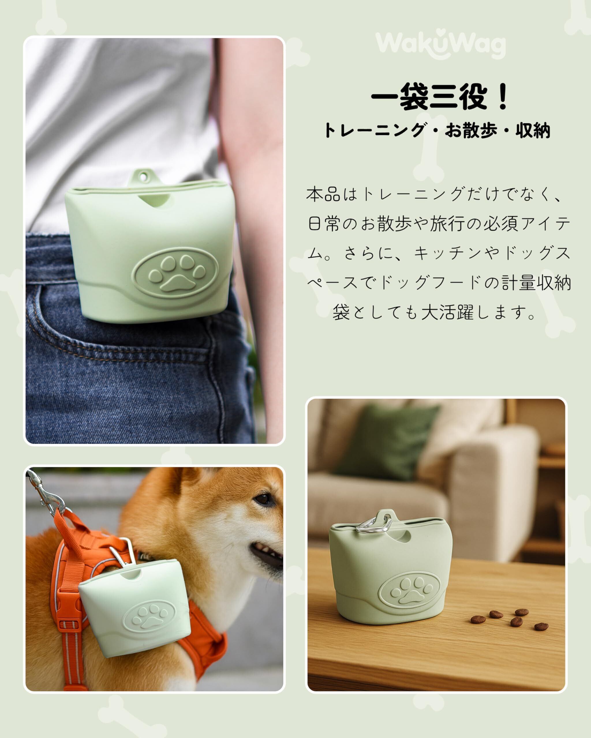 WakuWag犬用おやつポーチ シリコン トリーツポーチ 訓練グッズ 犬用トレーニングポーチ ドッグトレーニンググッズ お散歩バッグ 開閉便利 携帯しやすい お出かけ用 犬の訓練や散歩 犬 猫 ペット用品 (ライトグリーン)