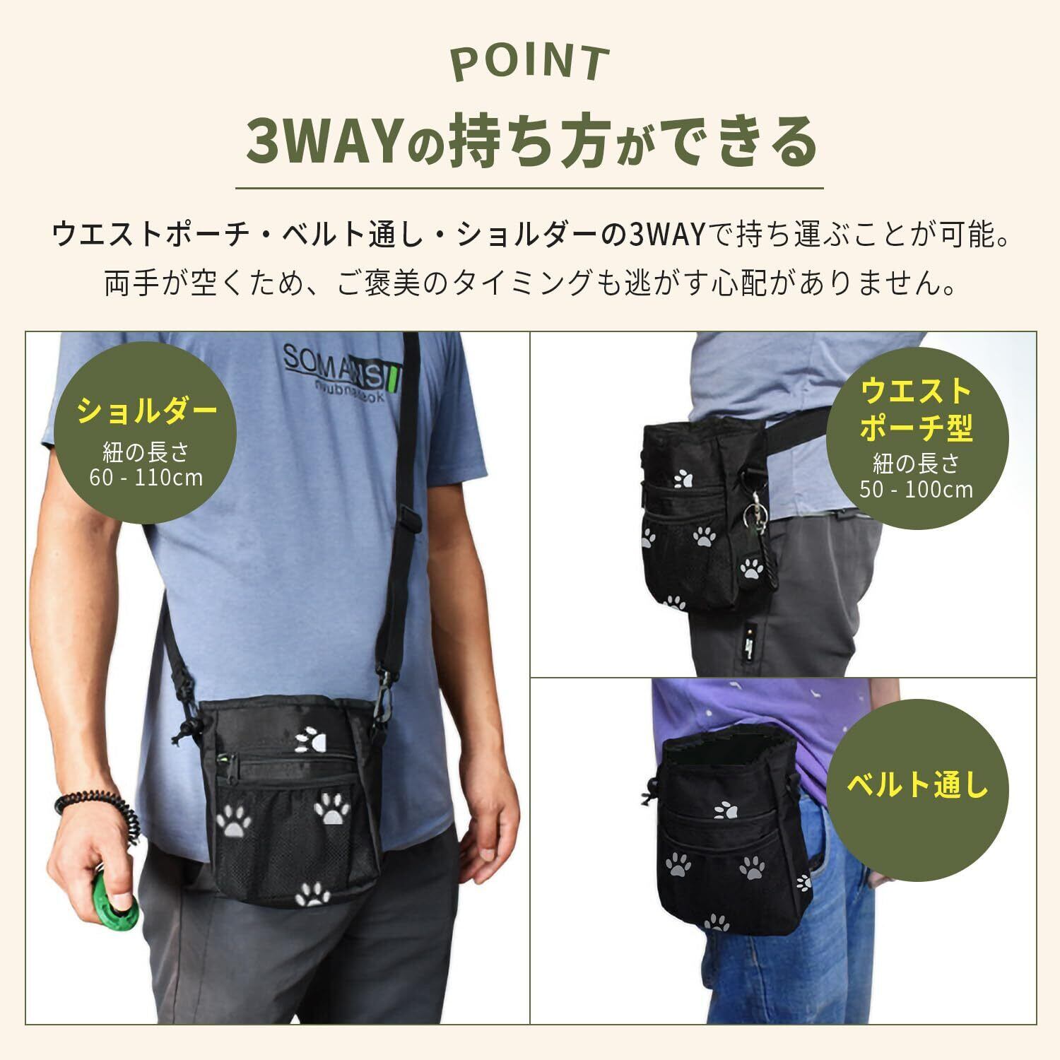 トリーツポーチ 犬 おやつ入れ お散歩バッグ 散歩 バッグ 犬お散歩ショルダーバック マナーポーチ トレーニングバッグ 訓練 さんぽ おやつポーチ ウエストポーチ 犬散歩バック 小物入れ エサ入れ 多機能 開閉便利 3WAY