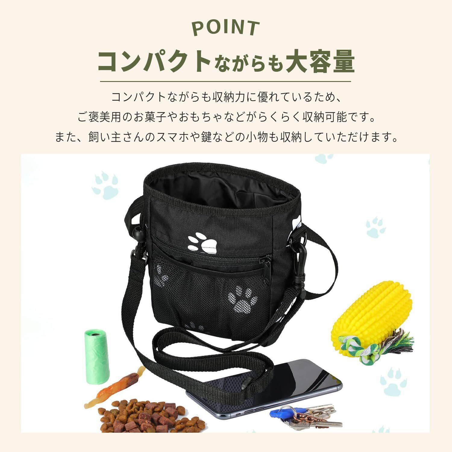 【機能性重視の飼い主へ】おやつ・おもちゃ・スマホ・鍵・うんち袋をひとまとめにできる犬用トリーツポーチ。散歩も訓練も快適に。
