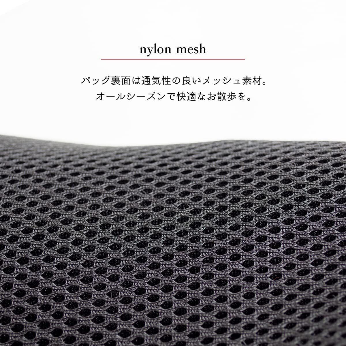 【耐久性に優れたナイロン素材】 ナイロン素材でお手入れも簡単。 バッグ裏面は通気性の良いメッシュ素材で、 夏のお散歩も快適に。 本皮をタグとファスナーに使用しています。 ウエストベルトは62~100cmまで調節できるので、 ご家族皆様でお使いいただけます。犬の体型や動作など、様々な諸条件により各パーツの外れ、 破損する場合がございますので、飼い主の責任において十分な安全管理を行ってください。