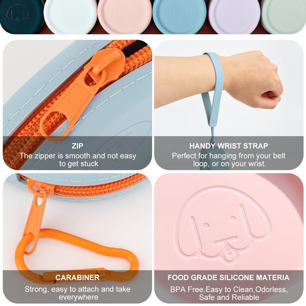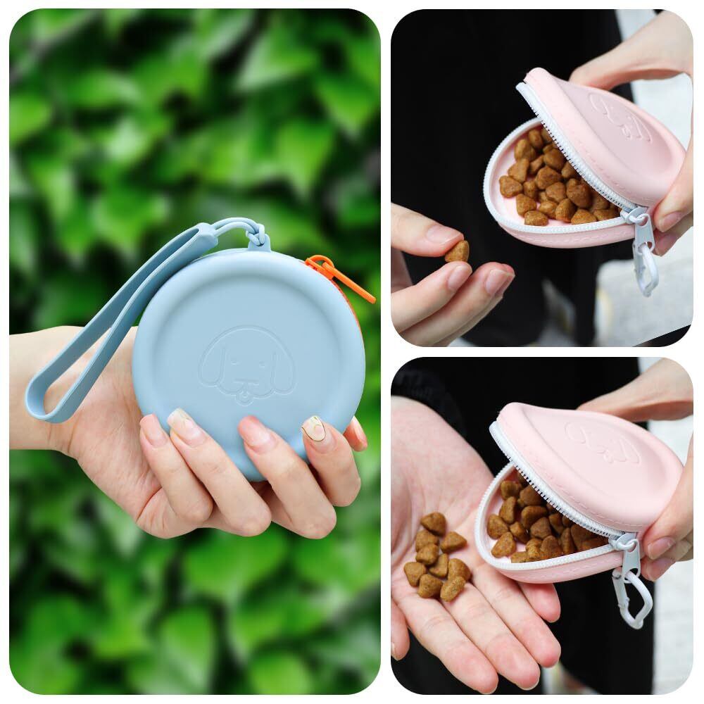 シリコン トリーツポーチ 犬の訓練用品 ツーピース ポケットサイズ お手入れ簡単ジッパーのデザイン防湿 防水 犬の散歩用品 持ち運びが簡単犬猫ペットのお散歩バッグ (青い粉)