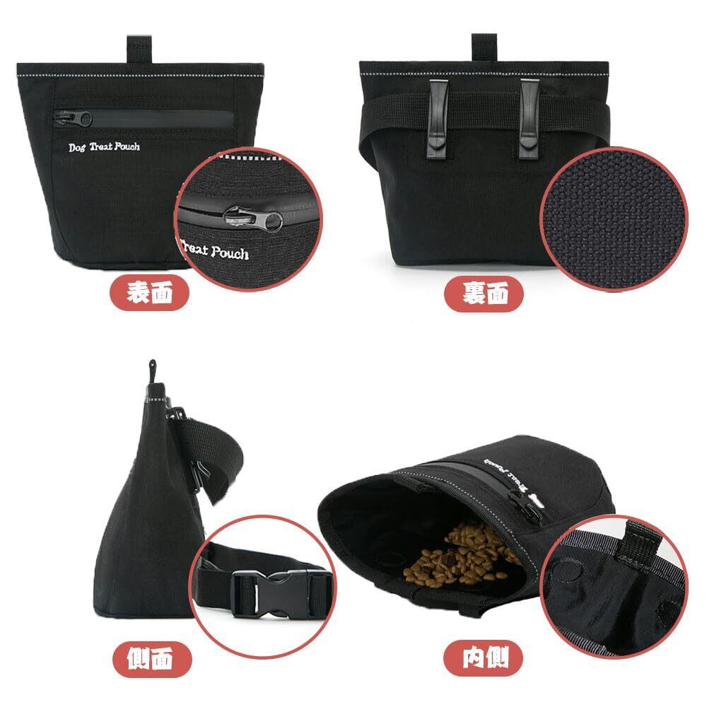 YBGGJO 犬用おやつポーチ 訓練バッグ 犬用 ウエストポーチ おやつ入れ 餌入れ 小物入れ お散歩バッグ 軽量 多機能 大容量 給食バッグ 散歩用 犬の訓練用品 (ブラック)