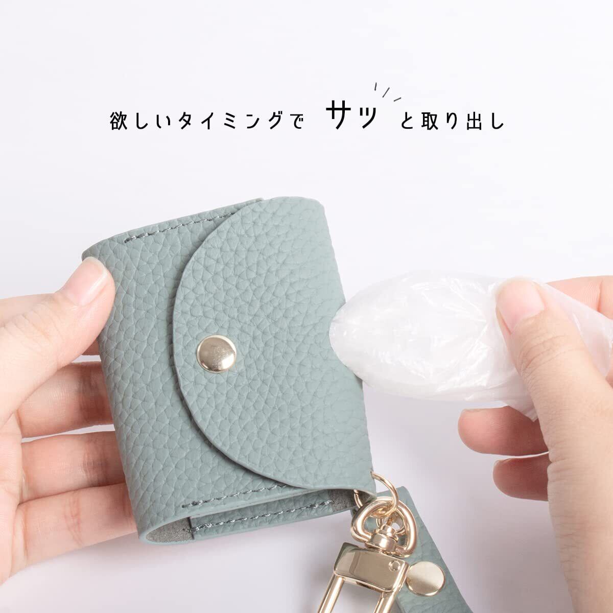 【オシャレもベンリも ミニお散歩ポーチ】 やわらかくしっとりとしたシュリンクレザーを使用。 中にエチケット袋をセットすれば、上部の穴からサッと取り出せます。スナップボタンは片手で開閉可能なので、 おやつ入れにも適しています。人気ブランドならではのこだわりがつまったアイテムです。