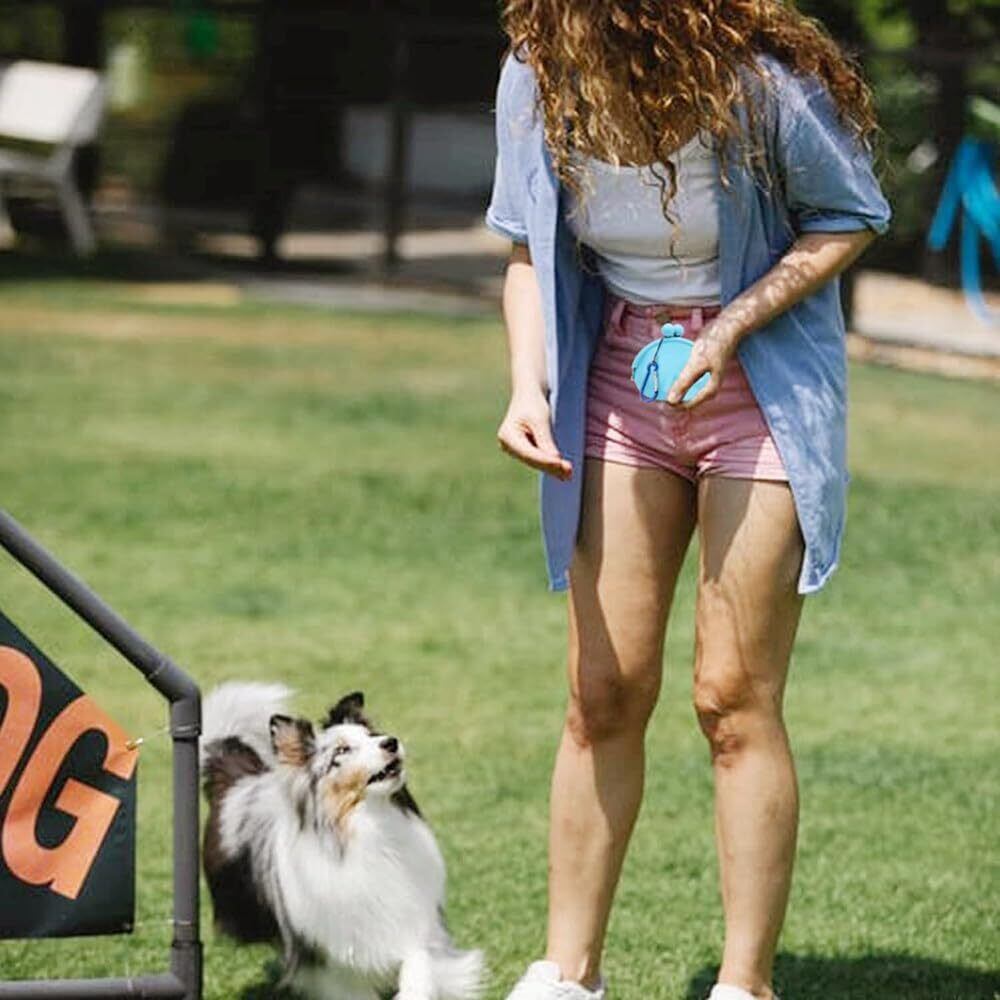 【持ち運びが簡単】犬のおやつバッグにはカラビナが付いており、おやつバッグをベルト、ズボン、バッグに掛けることができ、外出時に持ち運びが簡単です。