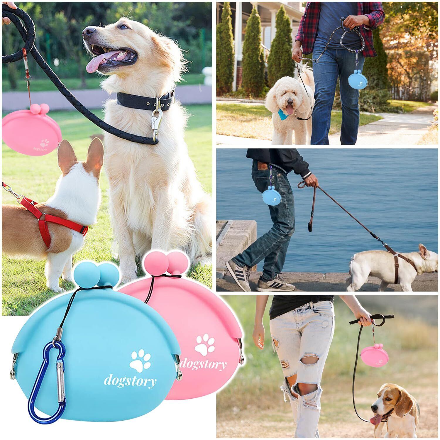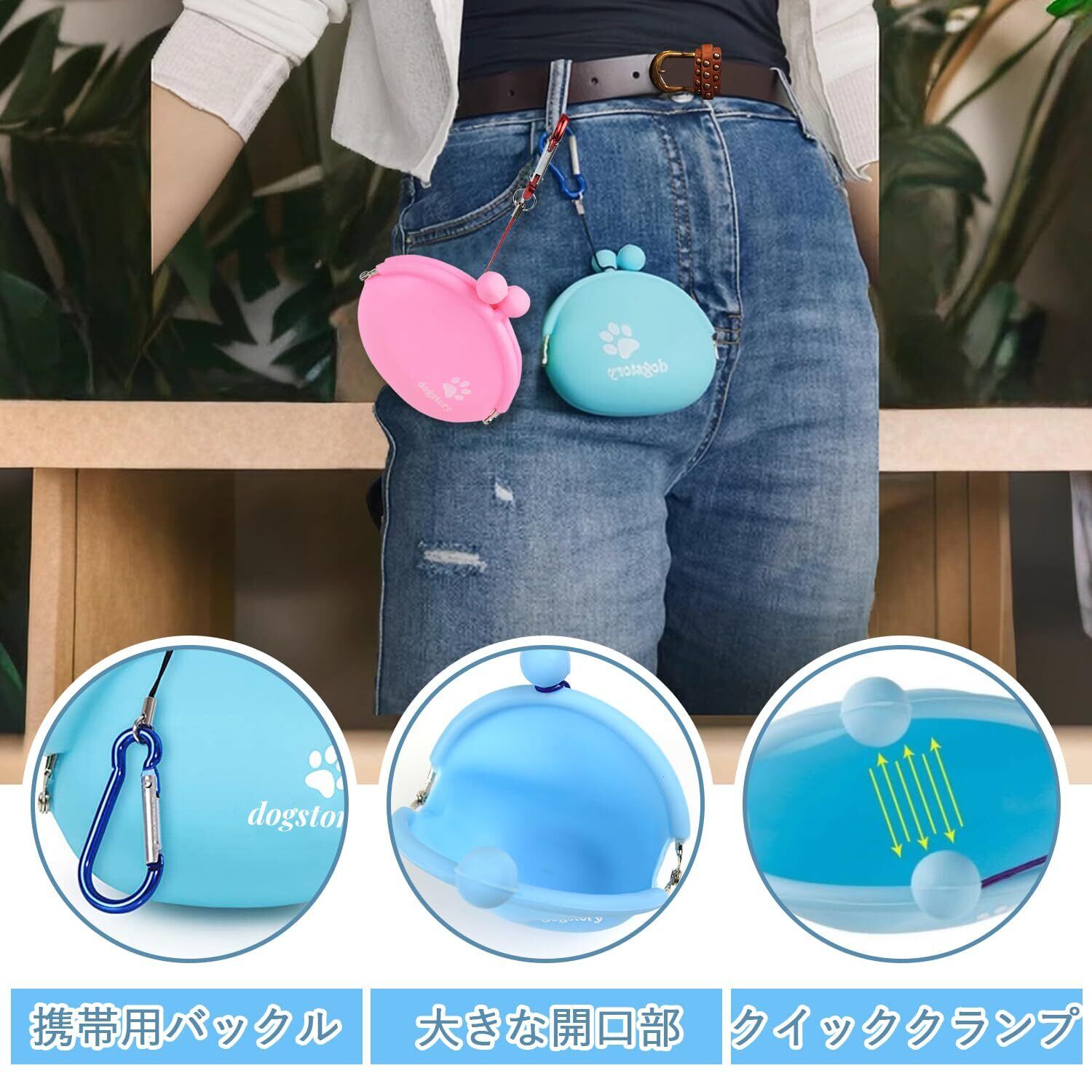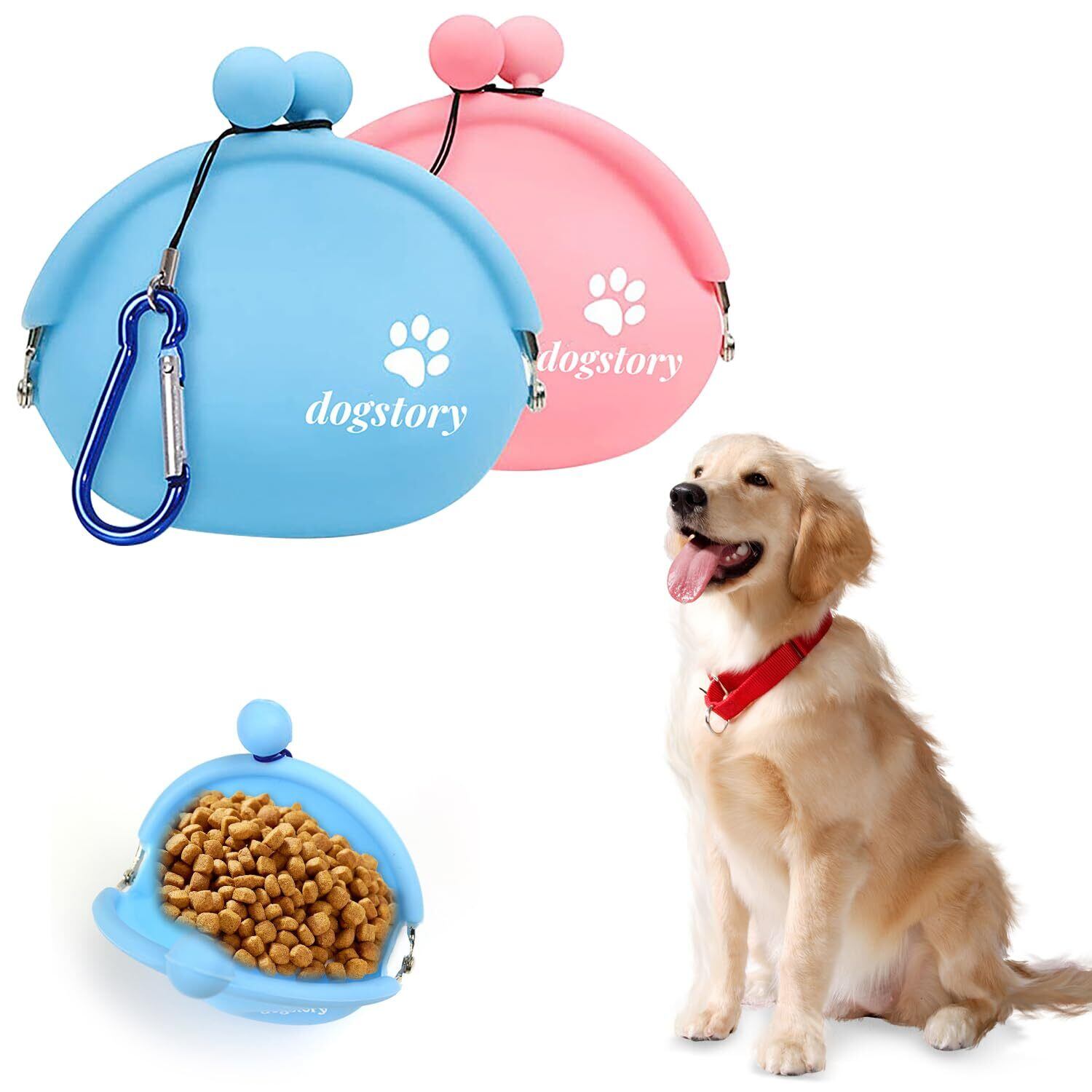 ADOFUN 犬猫用トリーツポーチ シリコン製【2個セット】 犬用おやつポーチ バックル付き 洗える 訓練バッグ おやつ入れ 餌入れ 防湿 防水 持ち運びが簡単 散歩用 犬の訓練用品