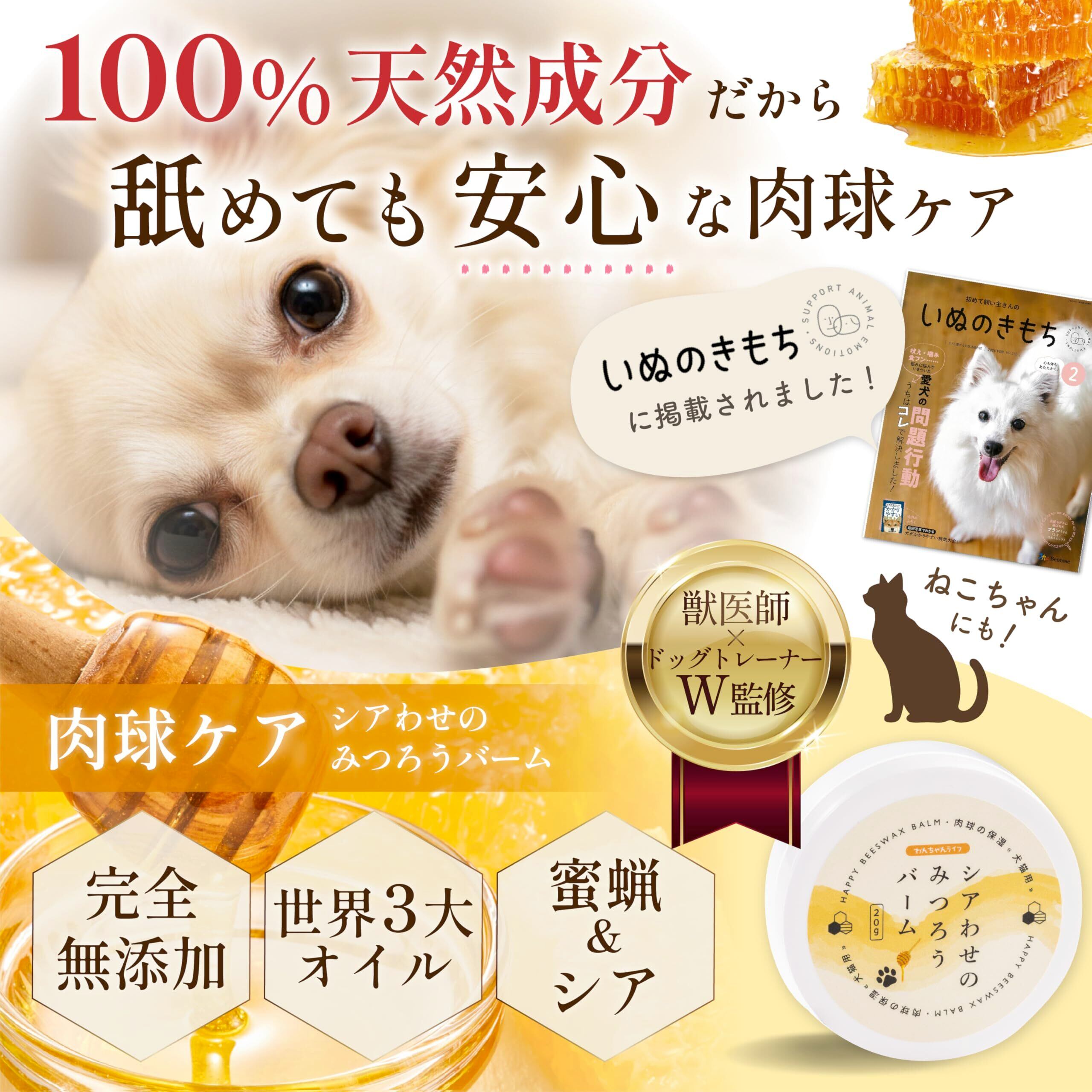 【獣医師監修】肉球クリーム 犬 猫 完全無添加 舐めても安心 シアわせのみつろうバーム シアバター 蜜蝋 100%天然由来 世界3大オイル 日本製 20g