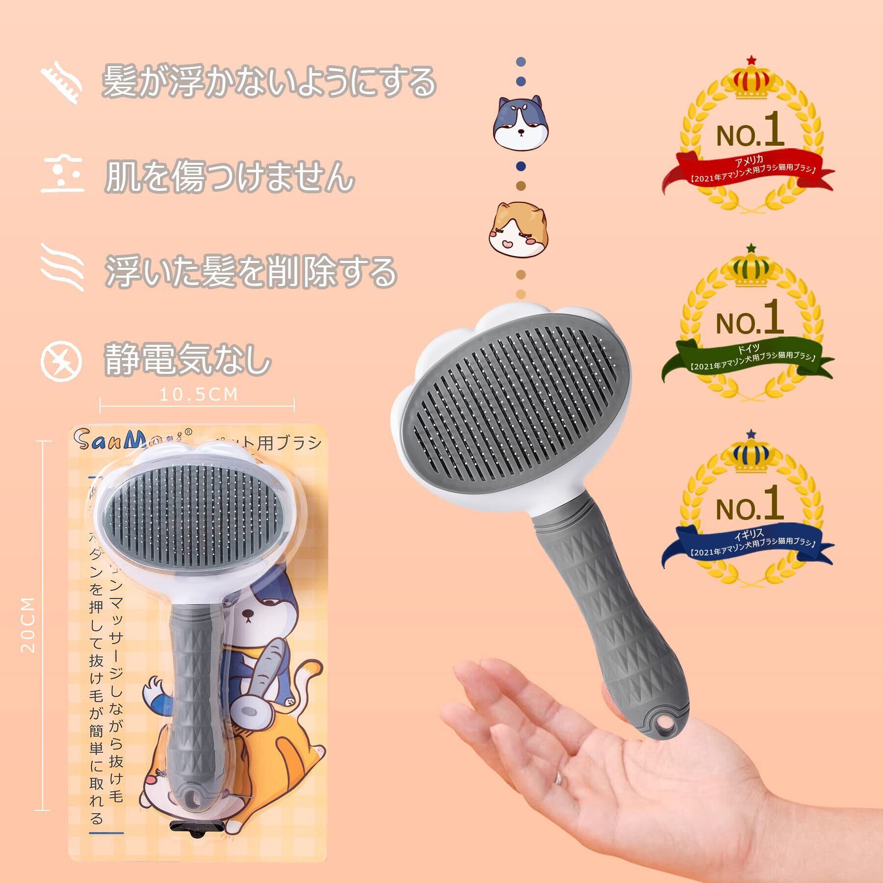 【正規品】SanMori ペット用 痛くない ヒーリングブラシ スリッカーブラシ 長毛・短毛種 くし ワンマッサージしながら抜け毛除去 ボタンを押して抜け毛が簡単に取れる ペットグルーミングブラシ 猫・犬兼用(グレー)