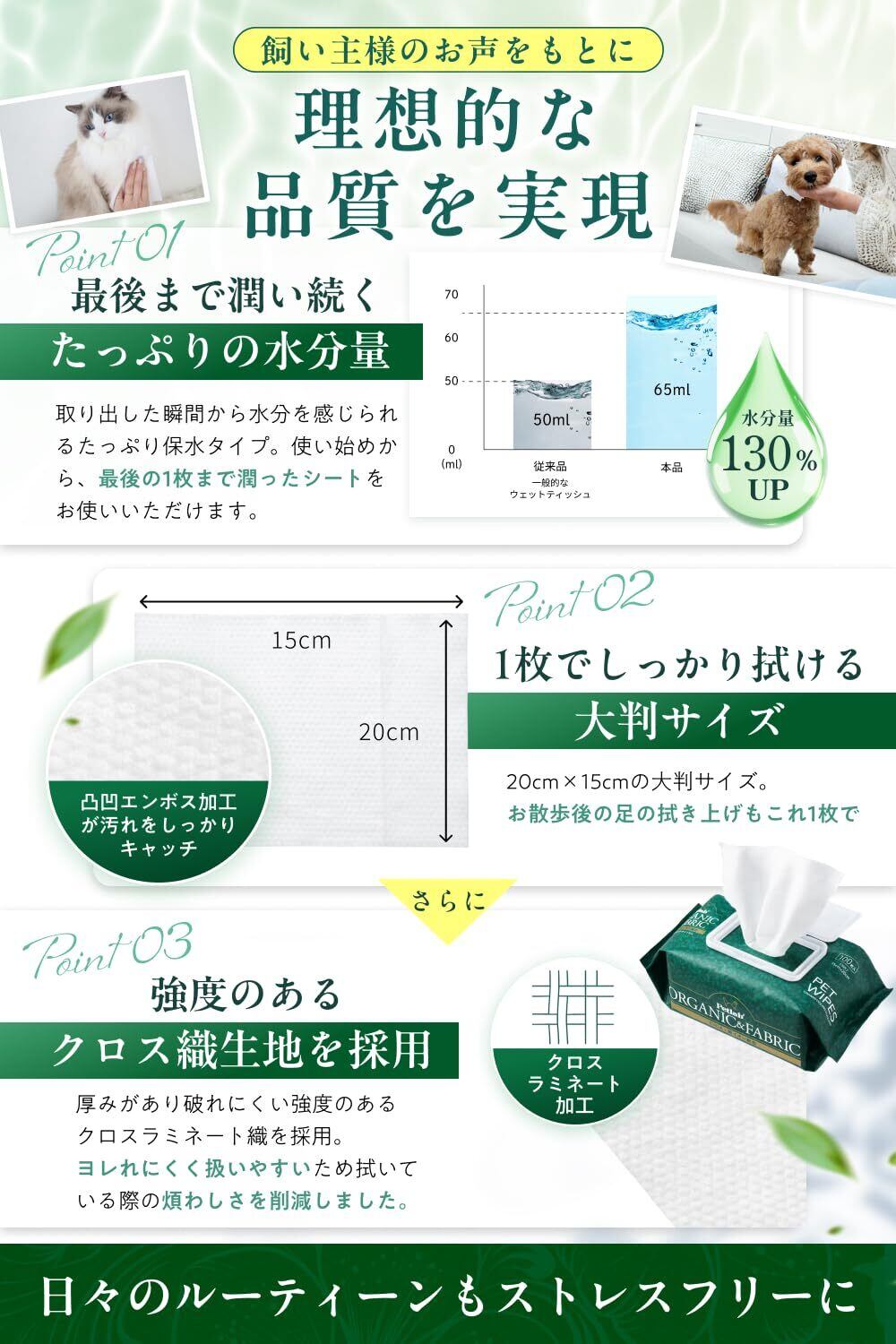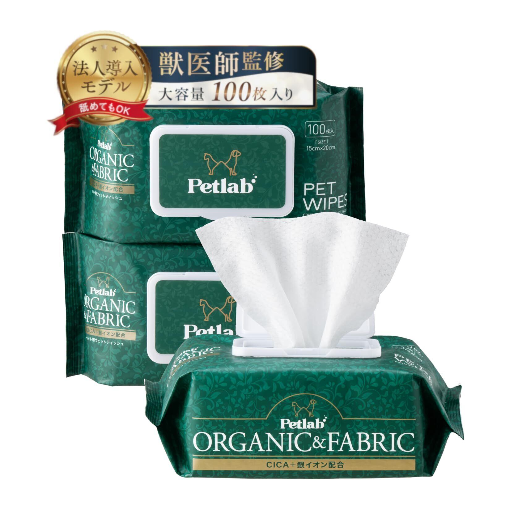 【厚労省認証のオーガニック成分×獣医師監修】極潤&厚手 犬猫兼用ウェットティッシュ [無香料・無添加・ノンアルコールで顔回り・ペットが舐めてもok安心仕様] 大容量100枚入り×3袋 皮膚ケア成分配合 CICA 茶葉エキス ビタミンE クエン酸