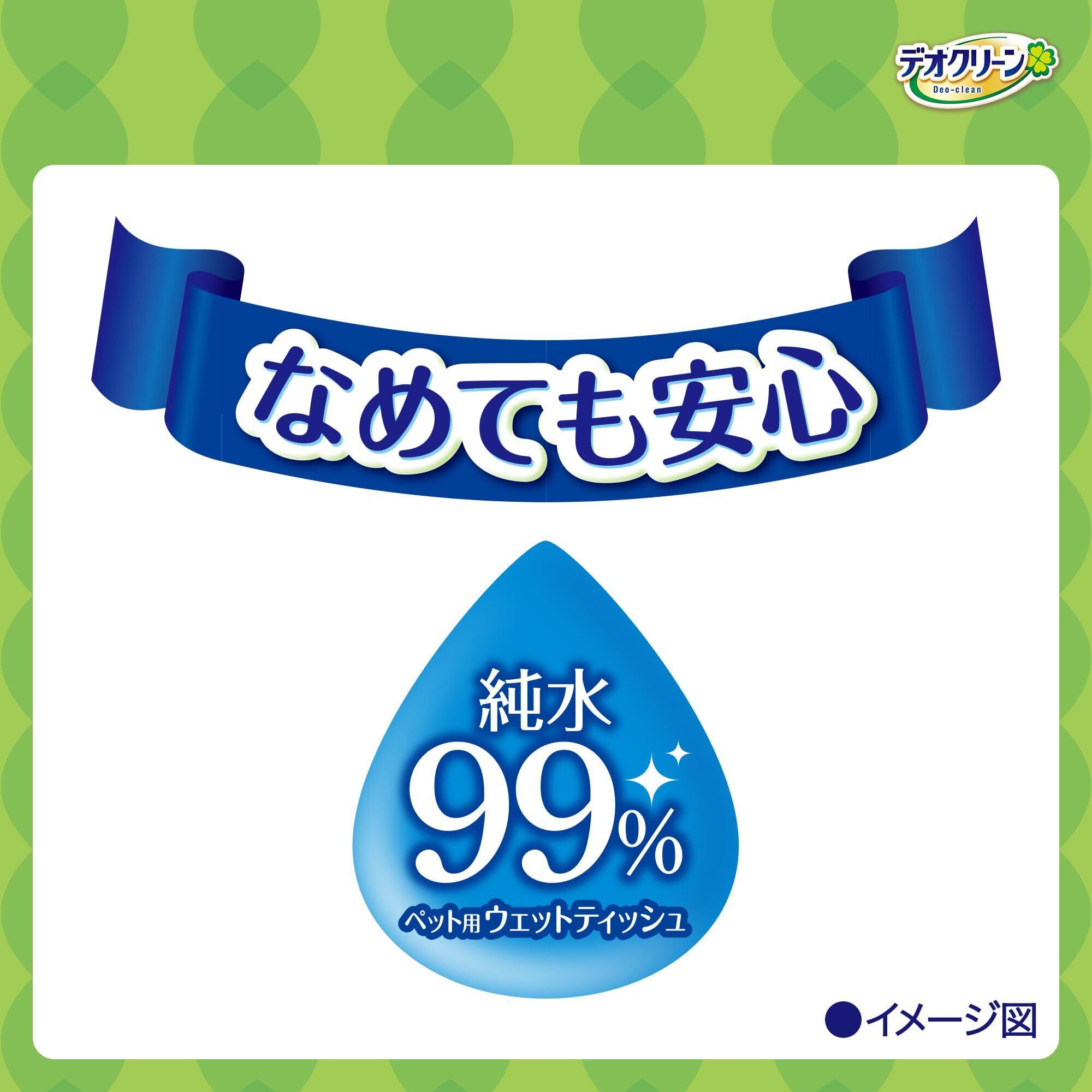 ・ペットがなめても安心・純水99%水分たっぷりのペット用ウェットティッシュ・無添加(アルコール、プロピレングリコール、パラベン、香料不使用)・自然由来成分使用・厚手普通サイズ(20cm×13cm)