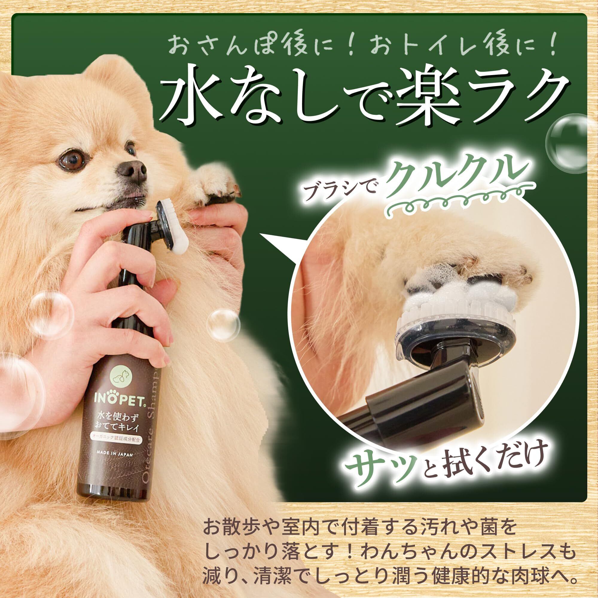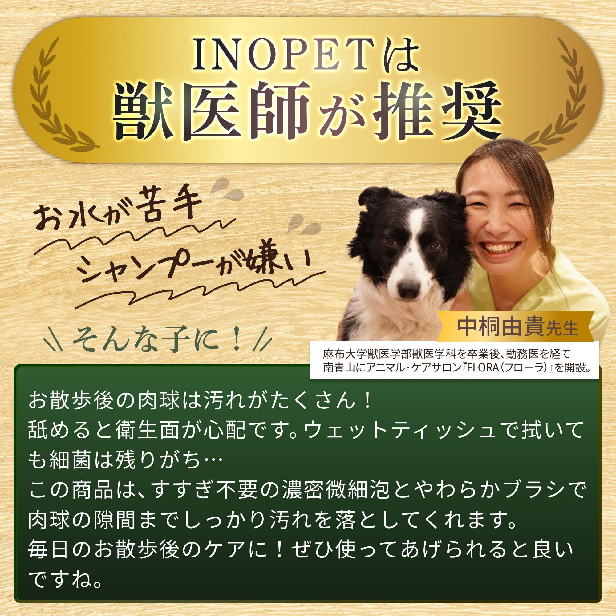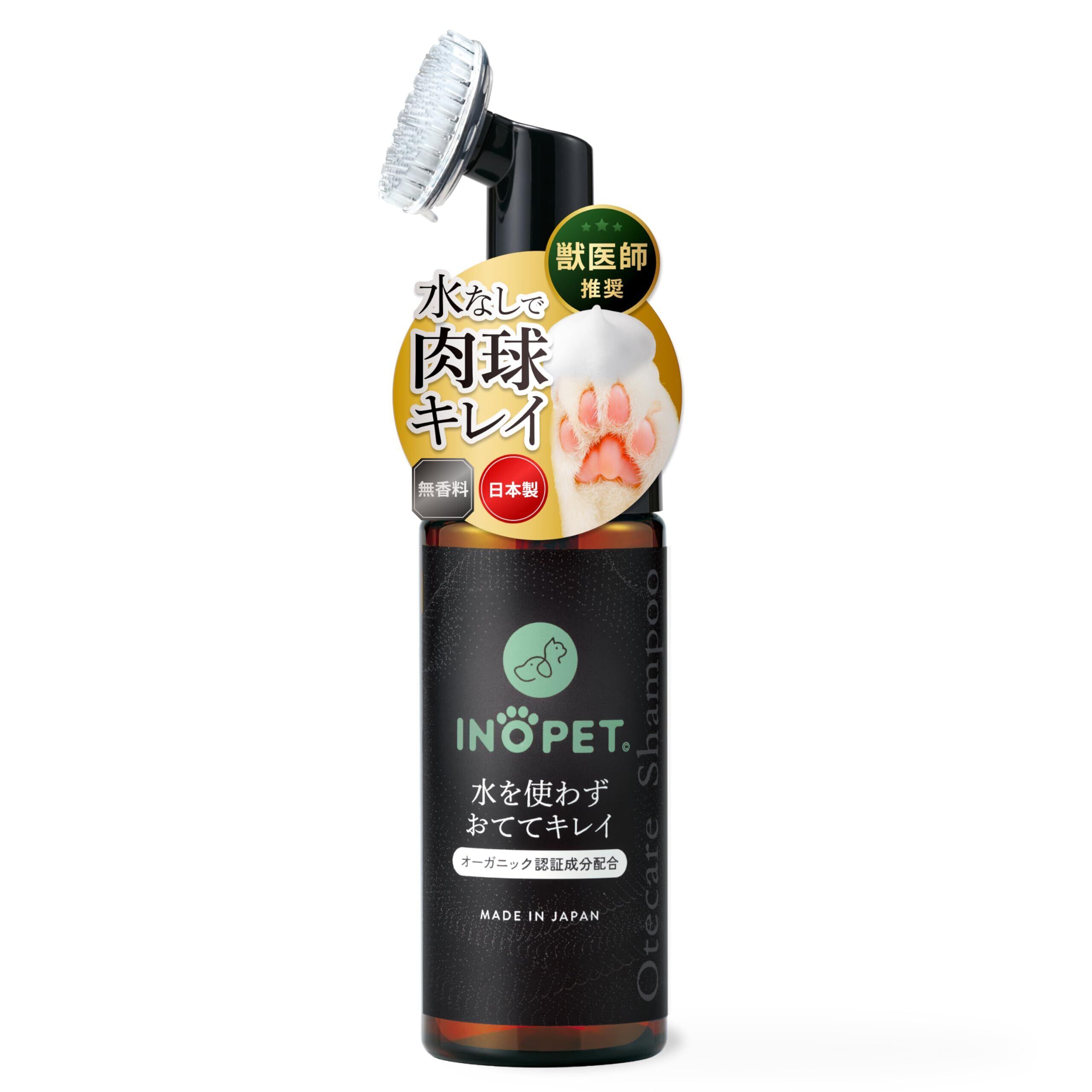 INOPET 肉球 おてケアシャンプー|お散歩後の足洗いに【さっと拭くだけ・柔らかブラシの泡シャンプー】洗い流し不要 犬・猫 舐めても安心 ノンアルコール 国産・無添加・オーガニック・無香料 獣医師推奨 150ml IP-OSP(単品)