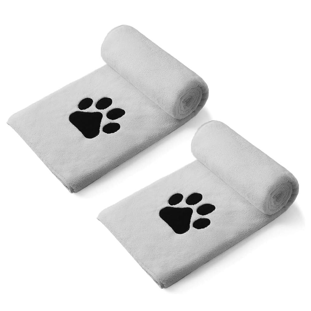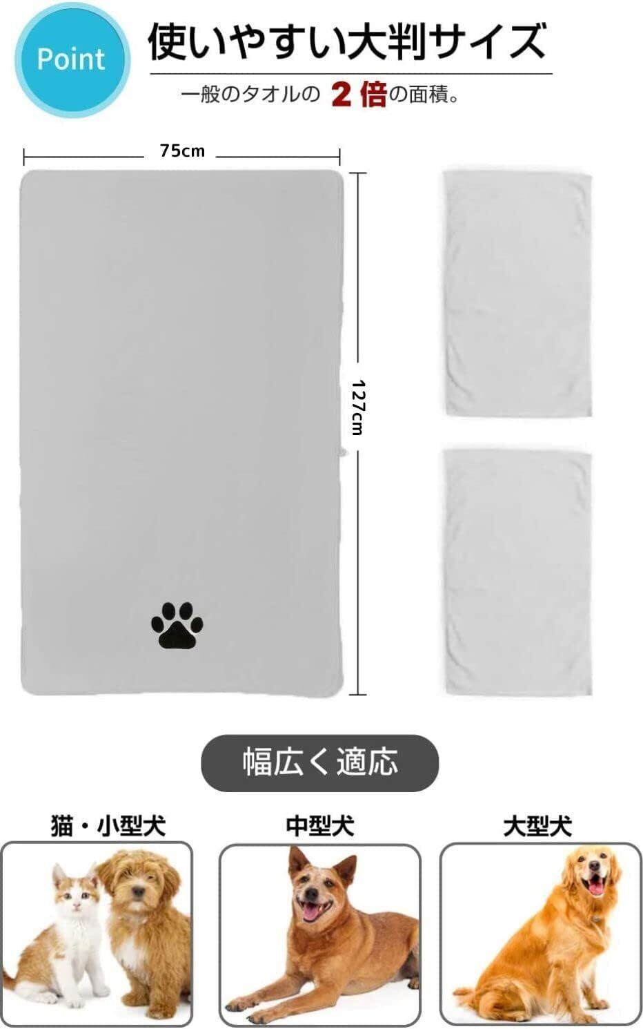 Perco ペット用タオル 2枚セット 超吸水 厚手 マイクロファイバー 犬 猫 タオル 速乾 体拭き用 (75cm×127cm) (ライトグレー)