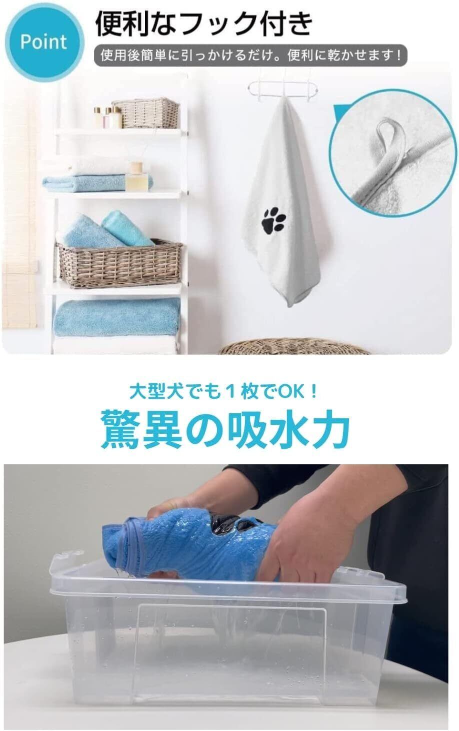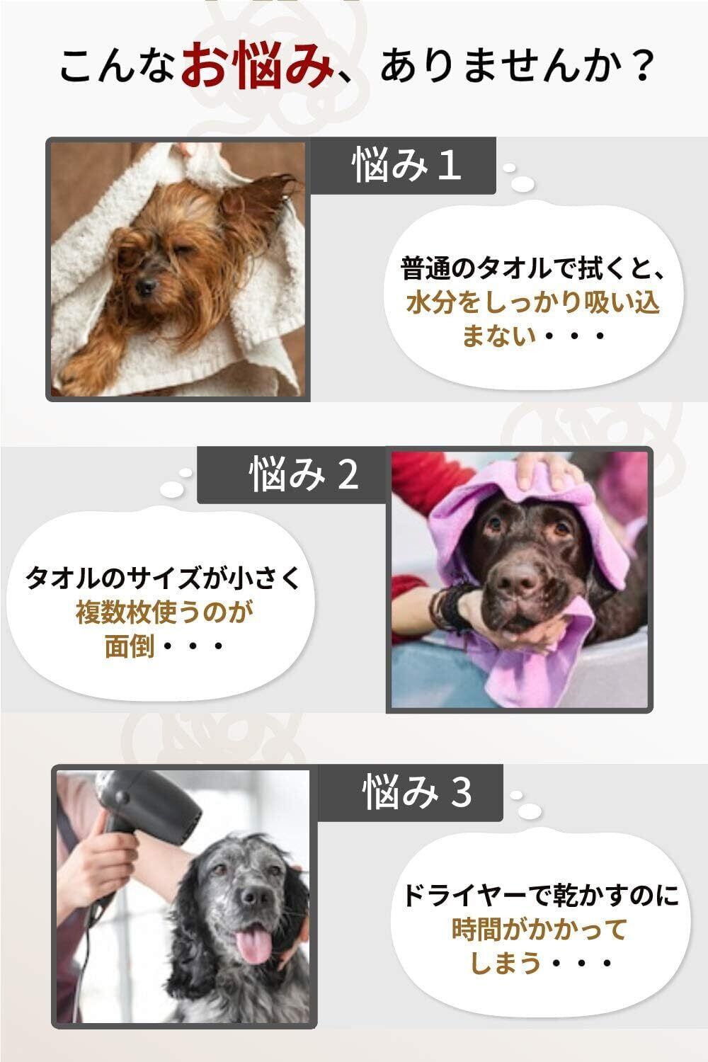 【2枚セットでお得&洗い替えに便利】 毎日使うペットタオルだからこそ、洗い替えに便利な2枚組。小型犬から大型犬、猫まで幅広いペットに対応し、シャンプー後や散歩帰りの体拭きにも活躍。