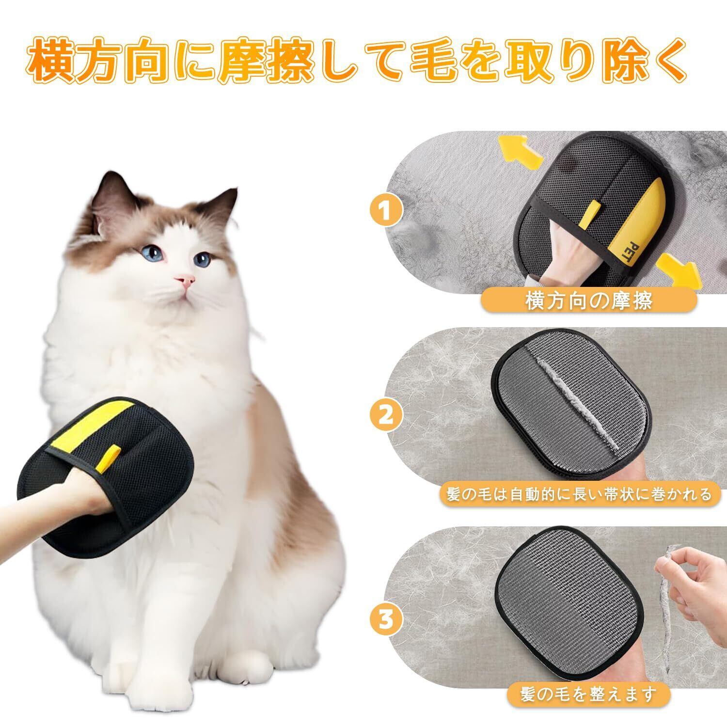 猫の毛除去手袋、犬の抜け毛用手袋、ペット犬猫グルーミンググローブ、ペット用静電毛取り手袋、ペットグローブ、両面ペットグルーミンググローブ、猫のグルーミング用手袋、除毛ブラシ 猫の毛取り、優しい抜け毛取りブラシグローブ、ペットの毛除去手袋、猫、犬、ウサギ、小動物用のペットのもつれ解消手袋 (ブラック)