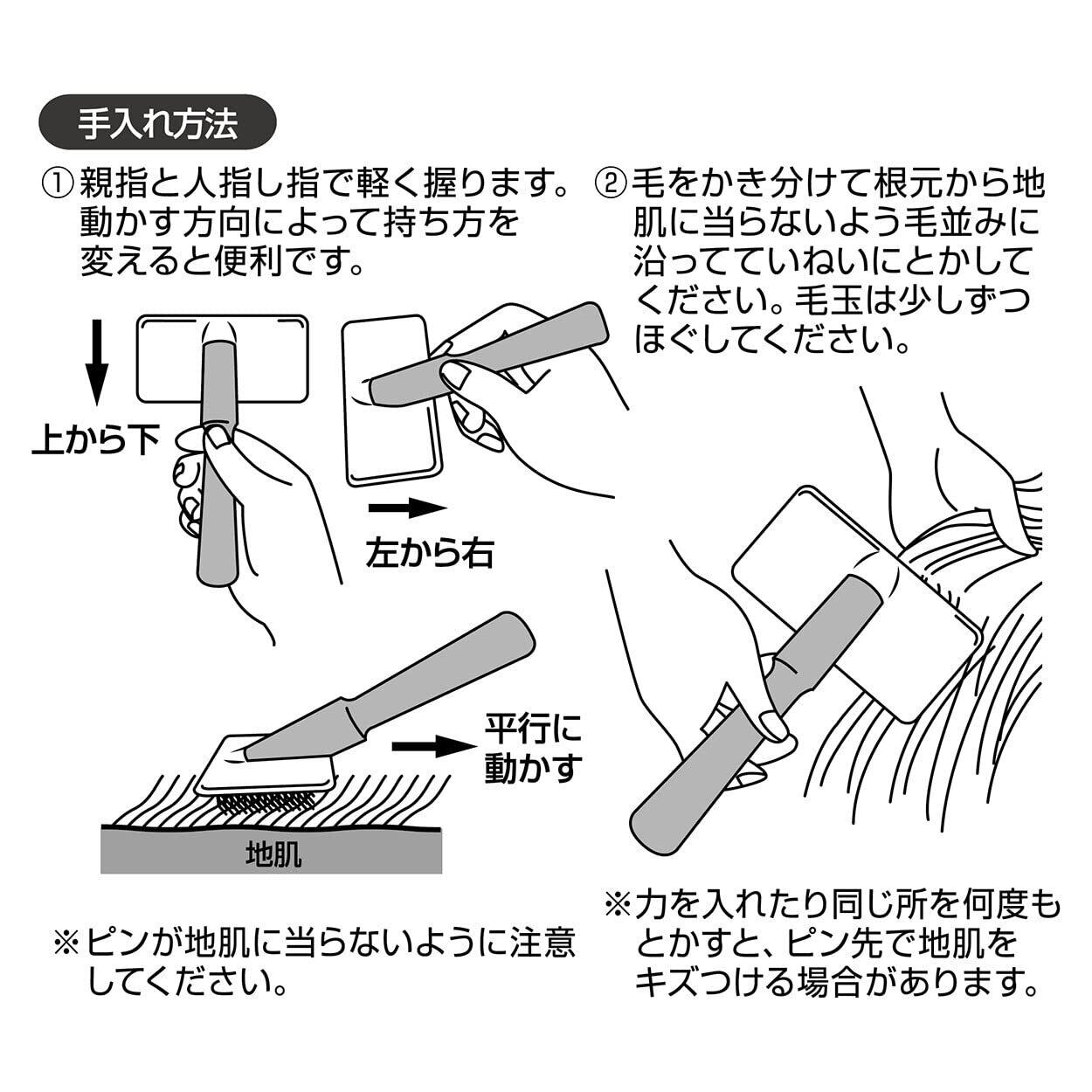 なめらかなピン先が肌にやさしく毛をしっかりかき出す