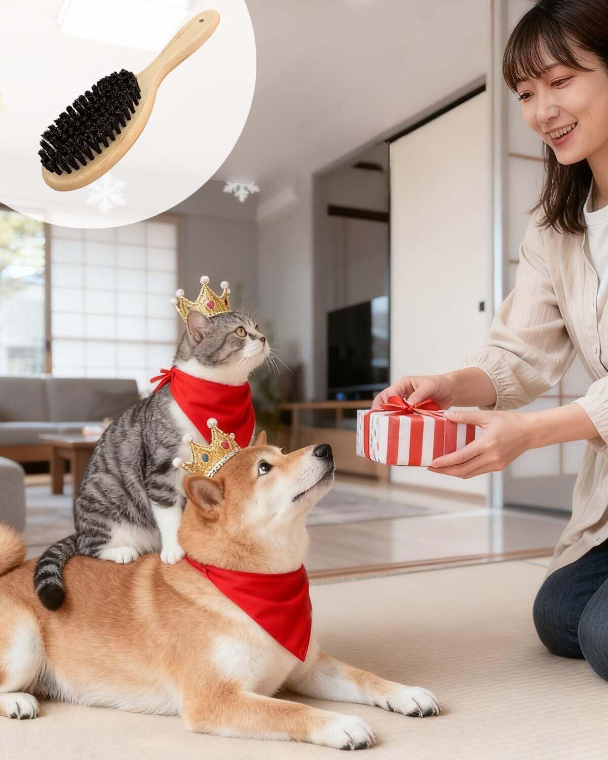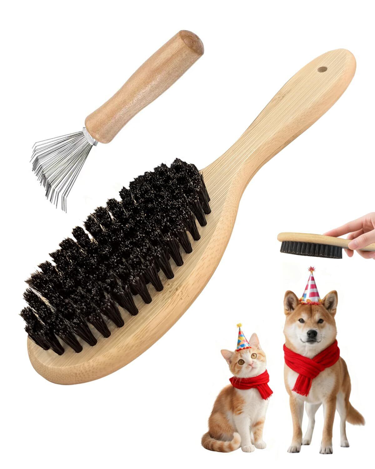 LIXUAN 猫ブラシ 高級キャットブラシ 豚毛スリッカーブラシ ソフトペット 犬,猫などに適用 (ブラシ+毛取りクリーナー)
