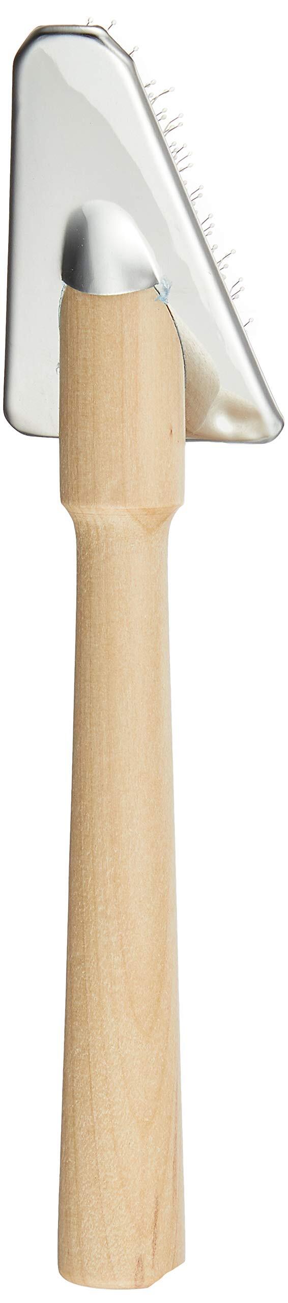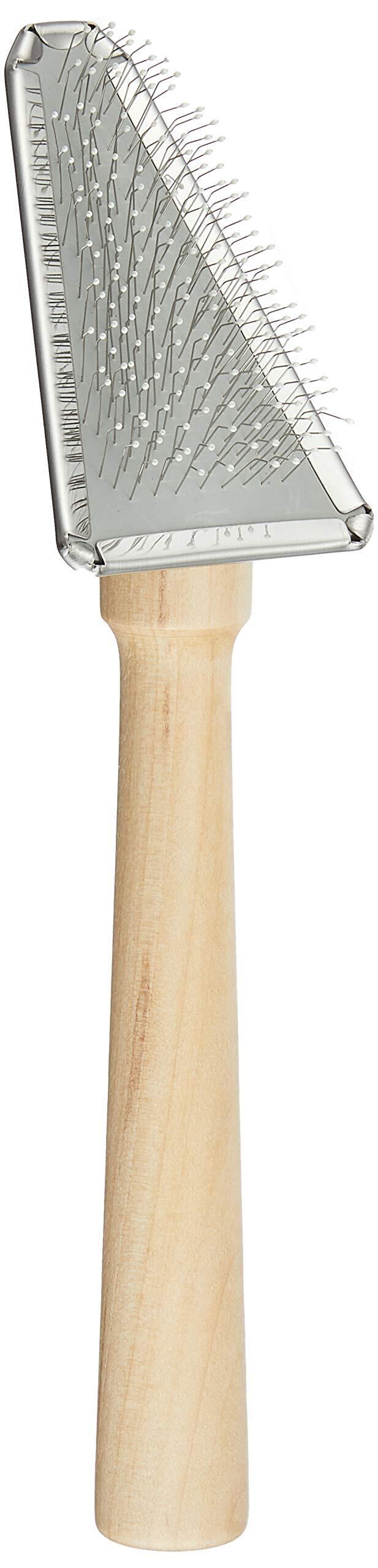 持ち手が12.5㎝と長く、持ちやすいのが特徴のスリッカーです。スリッカーはわんちゃんの皮膚を傷つけてしまう可能性があるのでピン先保護ボールを付ける事により、傷つけにくくしています。トライアングル型のスリッカーです。先端が細くなっているので顔周りや足先、脇下など通常のスリッカーでは難しい、細かい箇所に最適です。
