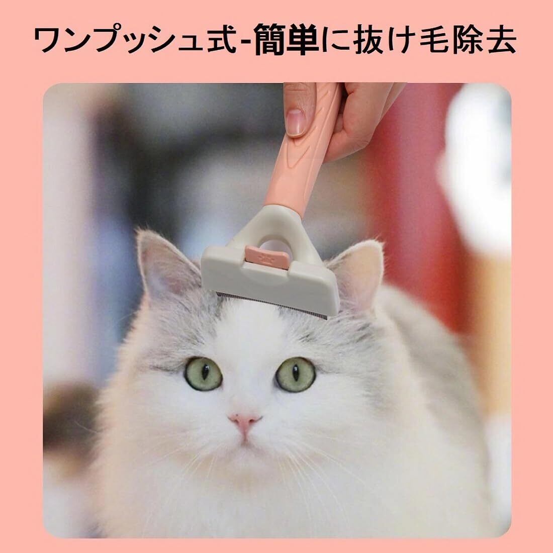 [bakala] ペットブラシ 猫 犬 ブラシ 小型 中型 短毛種 ヘアボール(毛球症)対策 肌に優しくアンダーコート 抜け毛 除去 ボタンを押して抜け毛が簡単に取れる グルーミングブラシ (M)