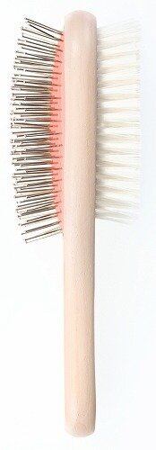 両面使えて便利! ピンブラシでときほぐし、ナイロンブラシで汚れを取れば、美しい被毛へ。