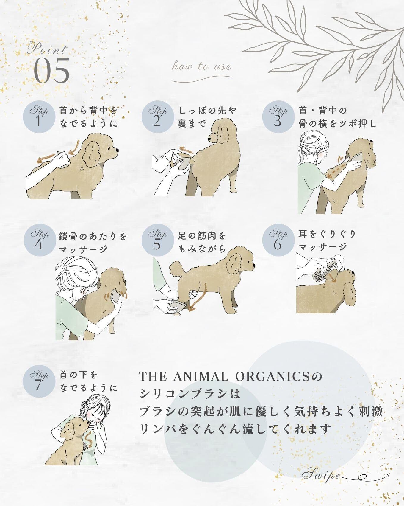 【獣医師×AEAJ認定アロマセラピストと共同開発】ペット用 ブラシ 犬用兼猫用 マッサージ ラバー シリコン ブラシ アニマルオーガニック