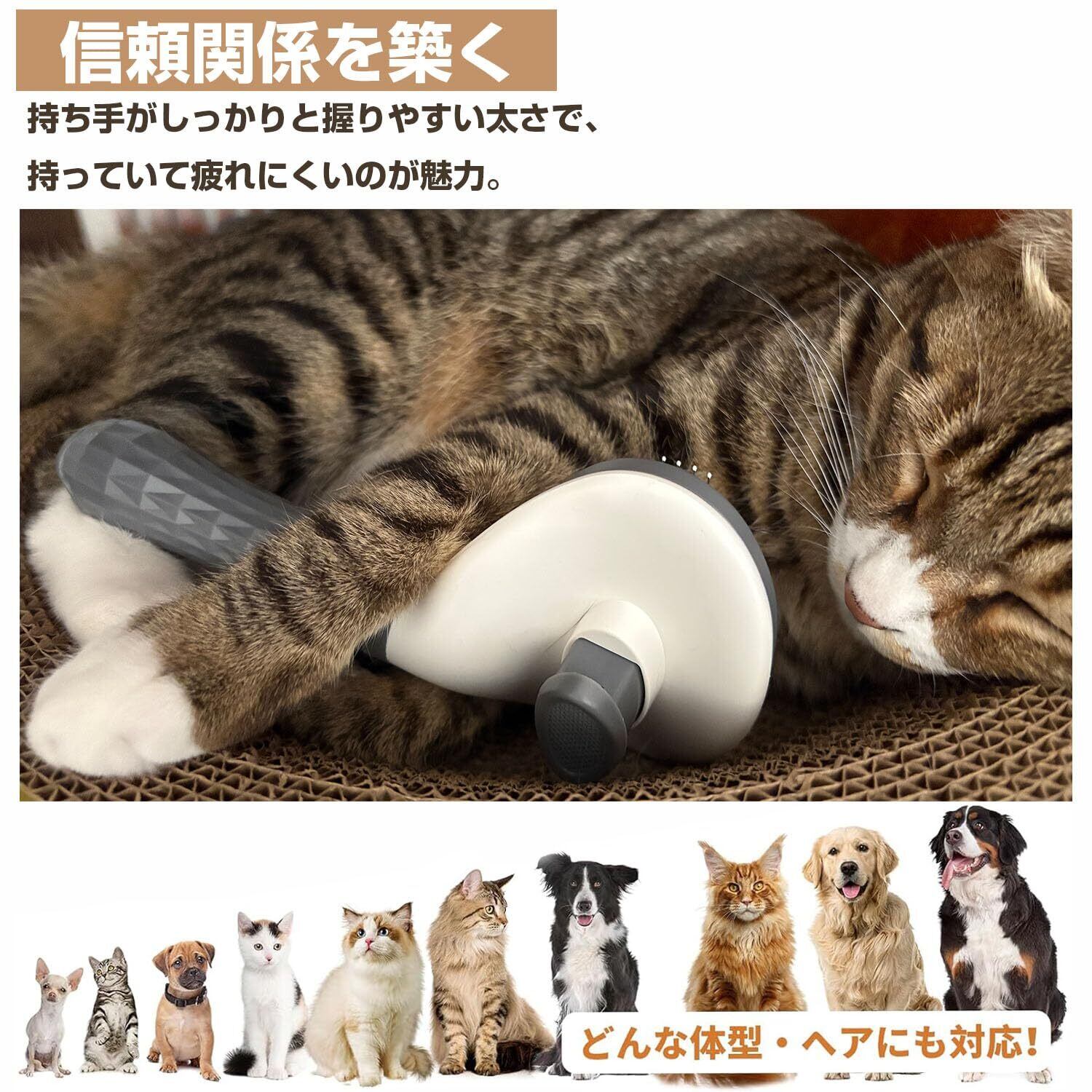 DCTONG ブラシ 犬用ブラシ 猫用ブラシ ペット用 ペットブラシ ヒーリングブラシ ブラッシング 犬用 猫用 マッサージ機能付き 毛取り簡単 痛くない ワンプッシュ式 お手入れ簡単 滑り止めハンドル 切れ毛防止 片付け もつれ解消 長毛種対応 短毛種対応 猫・犬兼用 収納便利 グレー