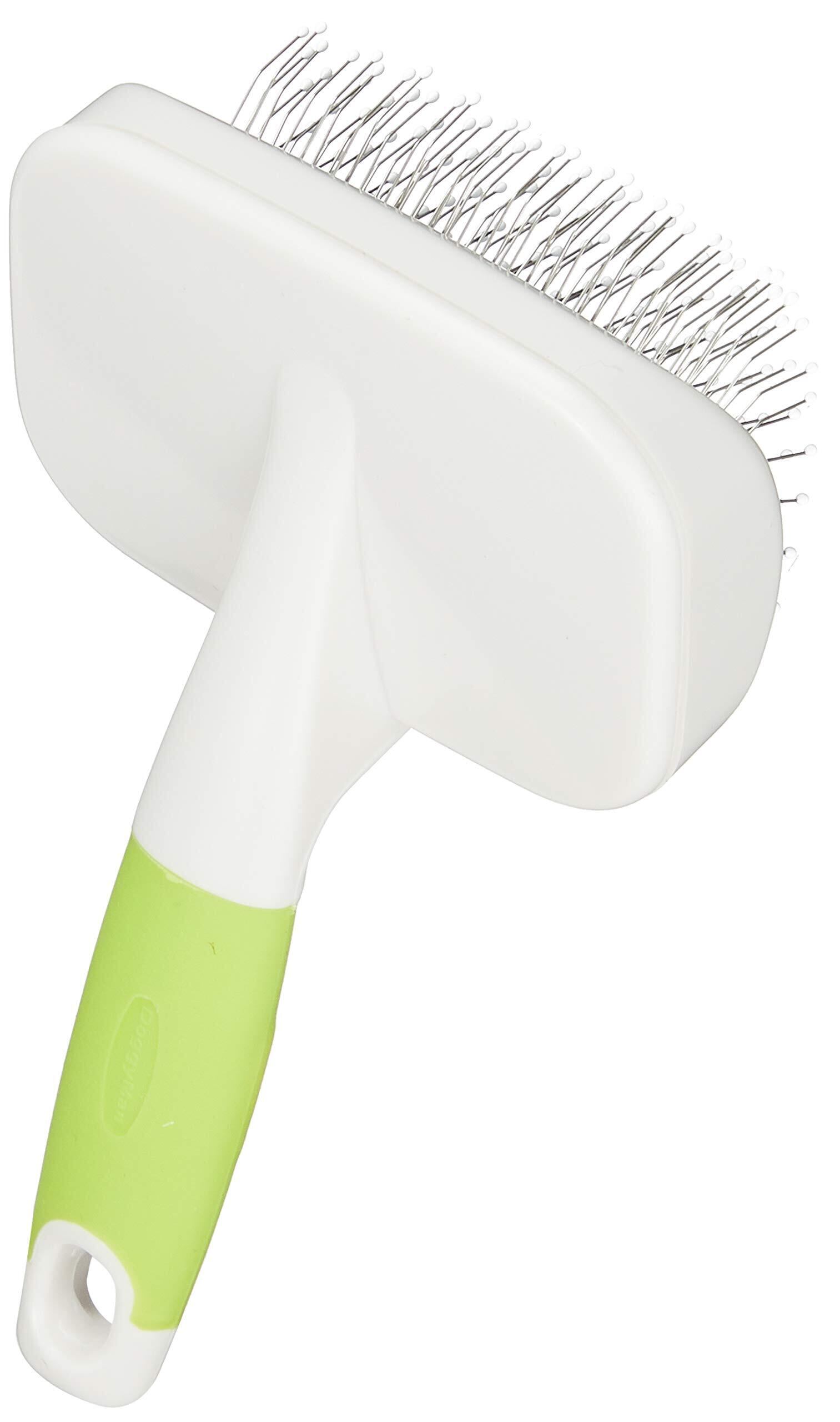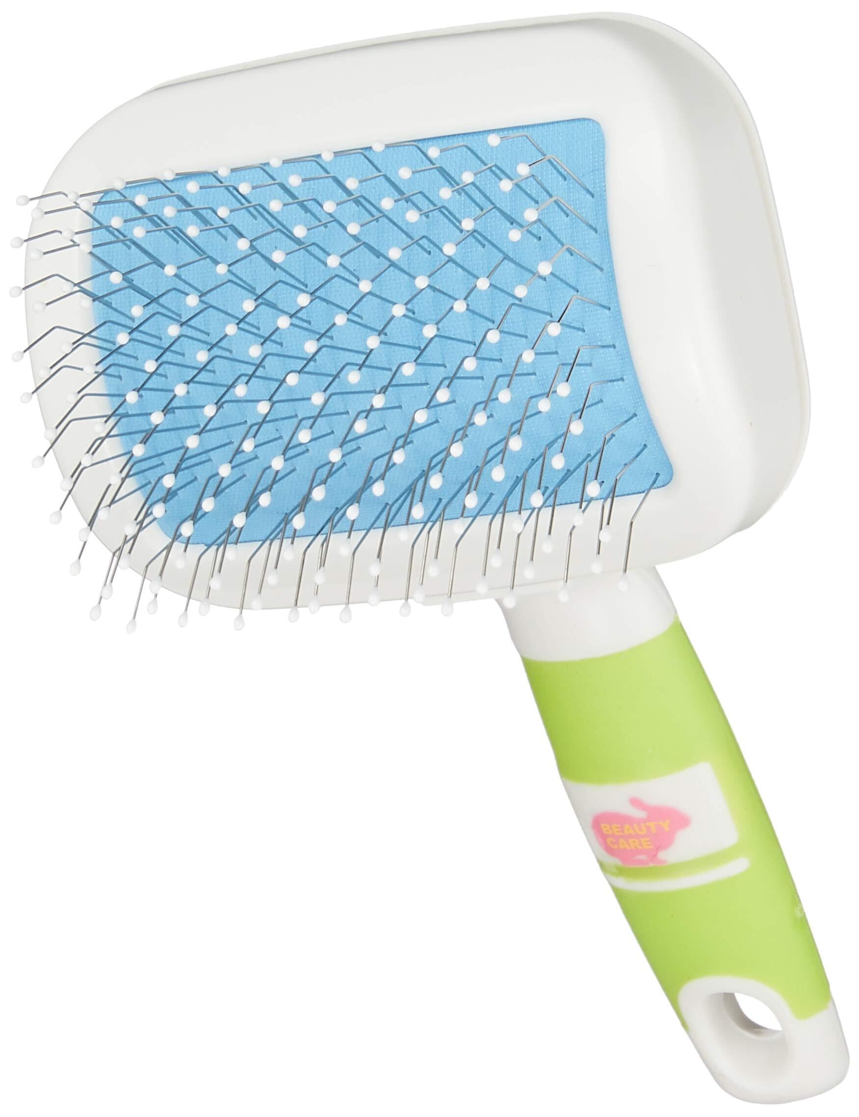 ウサギやフェレットのお手入れに、抜け毛を取り、もつれをほぐすスリッカーブラシ。ステンレスピンは先に玉がついており、肌にもやさしい。滑りにくいラバーをグリップの要所に使用。抗菌剤入り。お掃除グシつき。