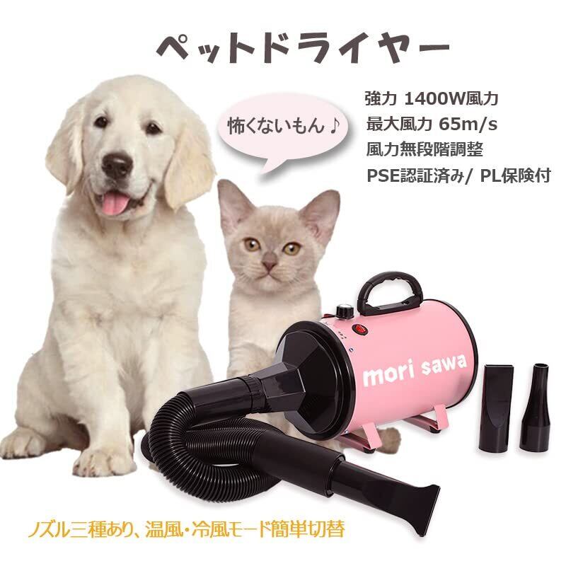 ペットドライヤー トリミング ブロワー 大風量 ブロワー 犬家庭用 速乾 大型犬 ペット用ドライヤー 風量/温度連続調整 業務用(ピンク)