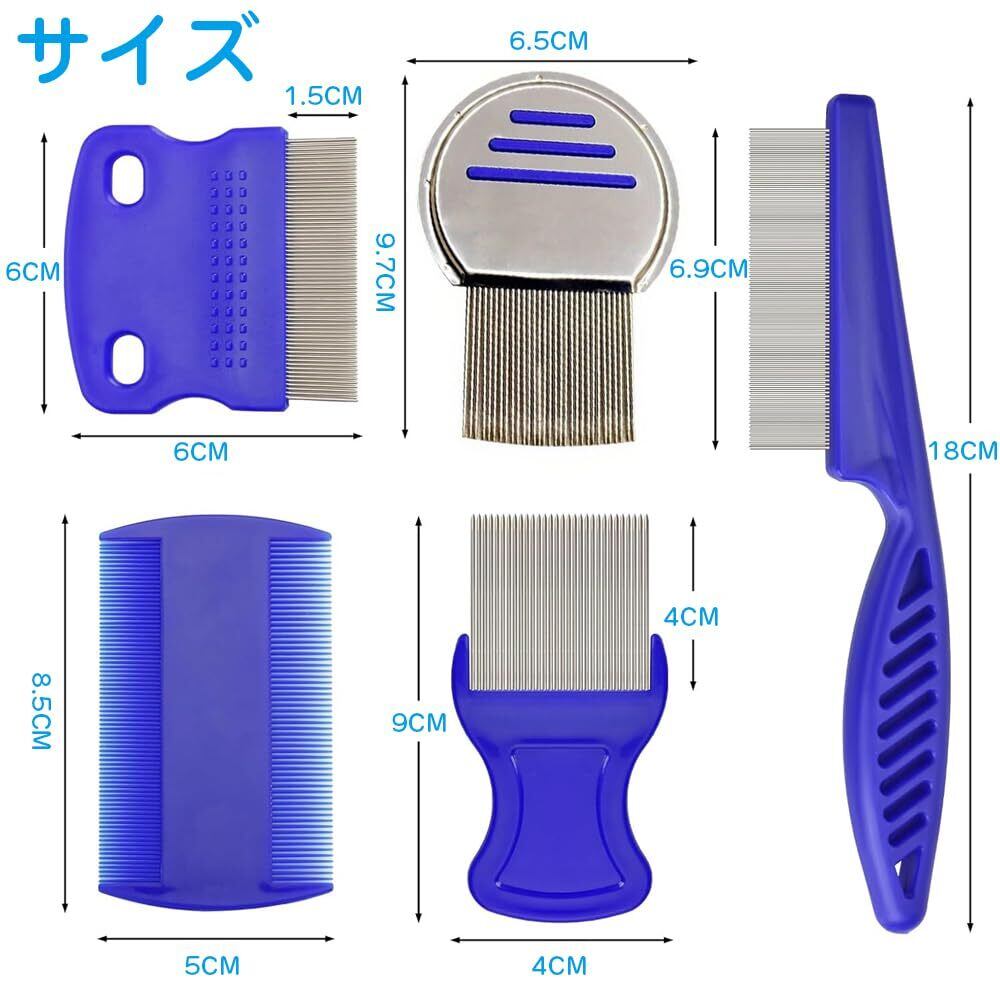 シラミ 櫛 ペット コーム ノミ取り櫛 犬猫用くし 5本セット アタマジラミを取り除く 極細コーム 多機能 簡単な操作 洗濯可能 ペット美容ブラシ 肌にやさしい ペット用品
