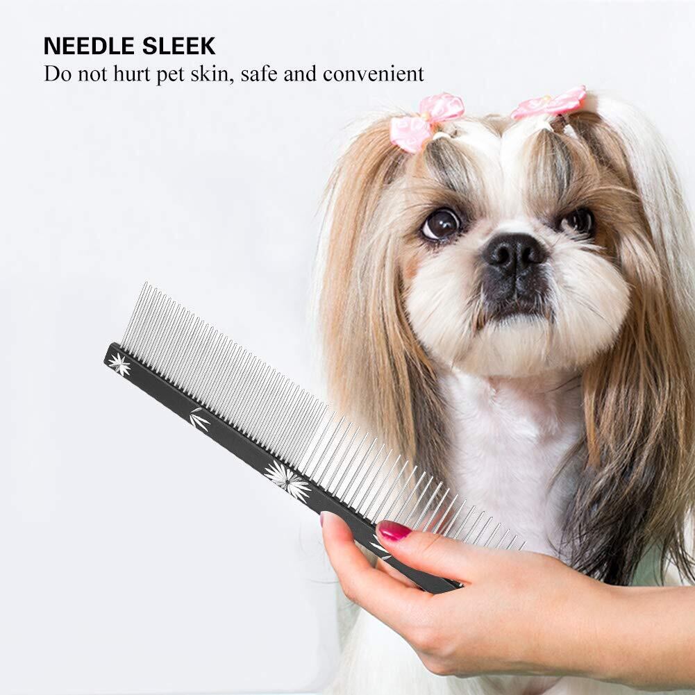 ペット用櫛 犬猫用くし 両目櫛 ペットコーム 抜け毛取り 毛繕い 静電防止 ペットトリミング用コーム 犬猫用 両目金櫛 ステンレス 多機能 滑り止め ダブルコーム歯毛のお手入れ用品 (ブラック)