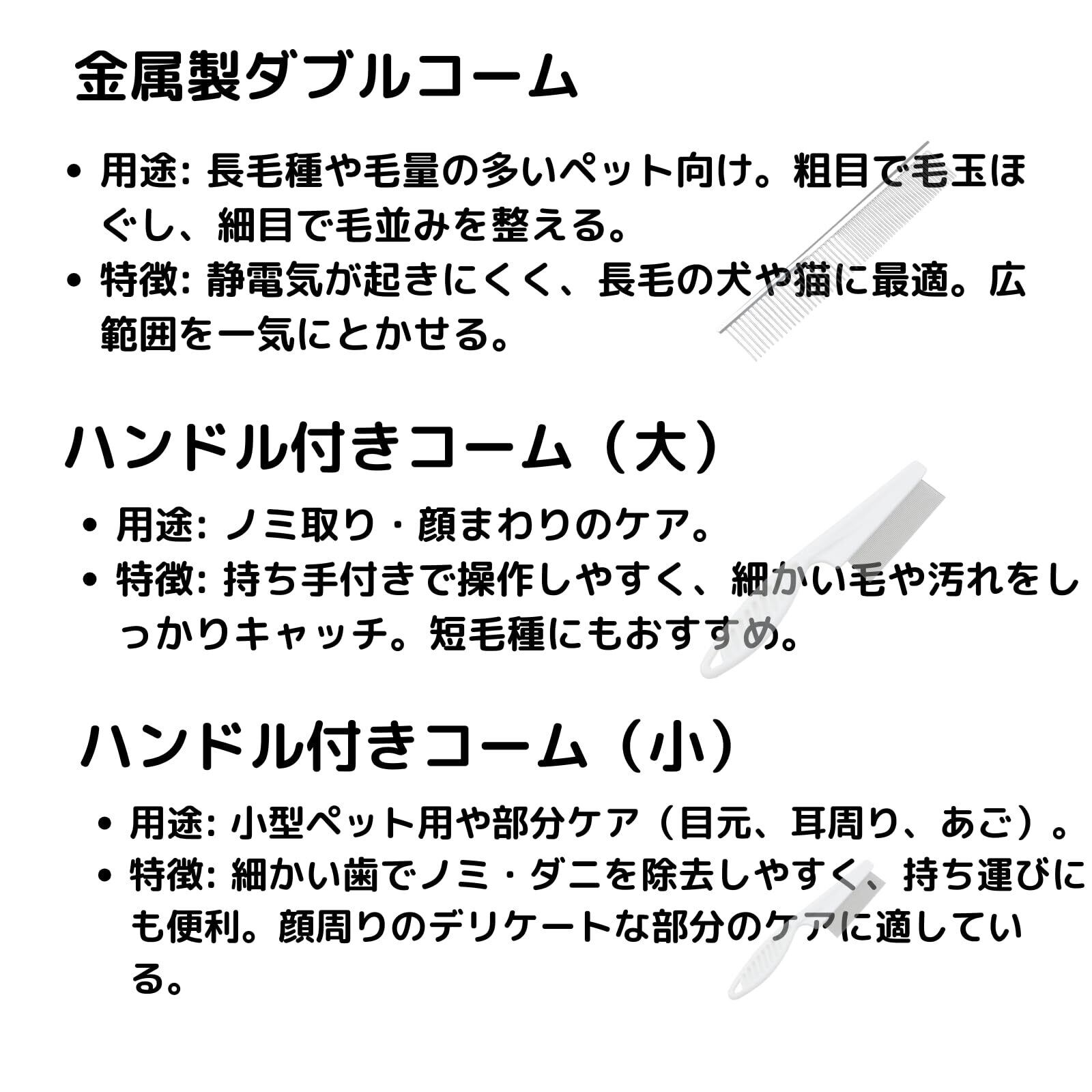 【ペット専用くしセット】犬猫兼用のペットコーム3本セット。粗目・細目のコームで、毛玉取りやノミ取りまで幅広く対応!