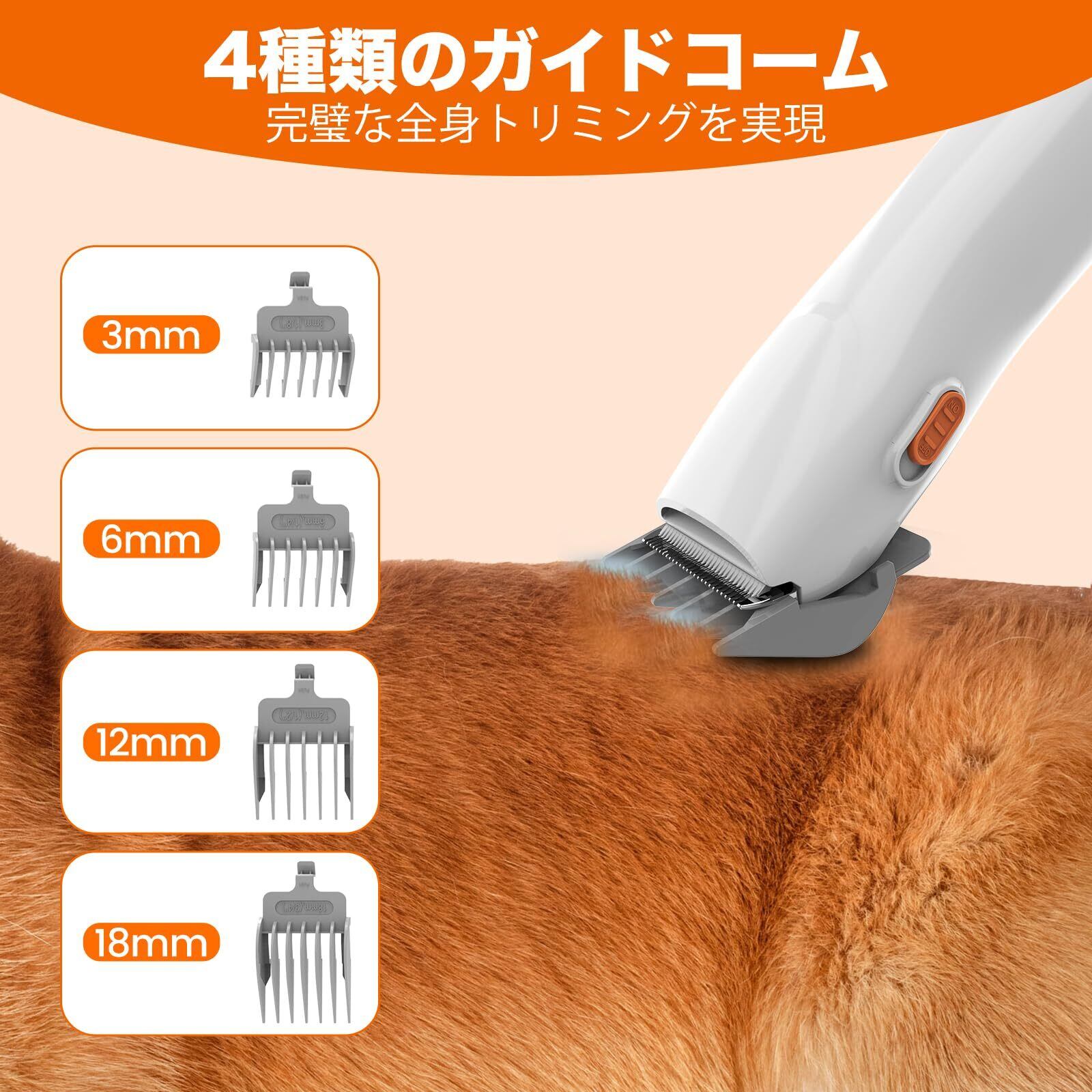 99%の抜け毛を吸い込む:犬 バリカン部品は、トリミングする同時に一気に剃った毛をダストカップに吸引し、掃除する必要がないです。全身カット用ブレードと細部ブレードとガイド櫛が付いており、必要によってスムーズな作業ができます。グルーミングブラシとすきブラシはブラッシングする同時にワンタッチで抜け毛を99%吸い込みます。他に掃除機用ブラシと吸い込みツールまであって家と服の掃除までできます