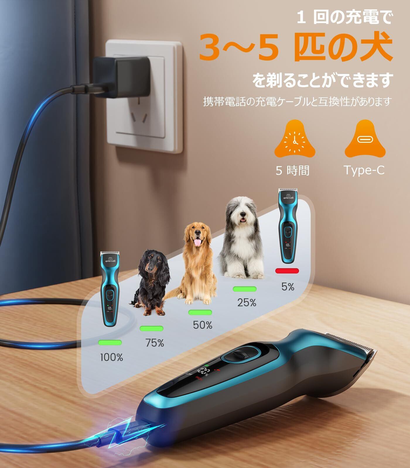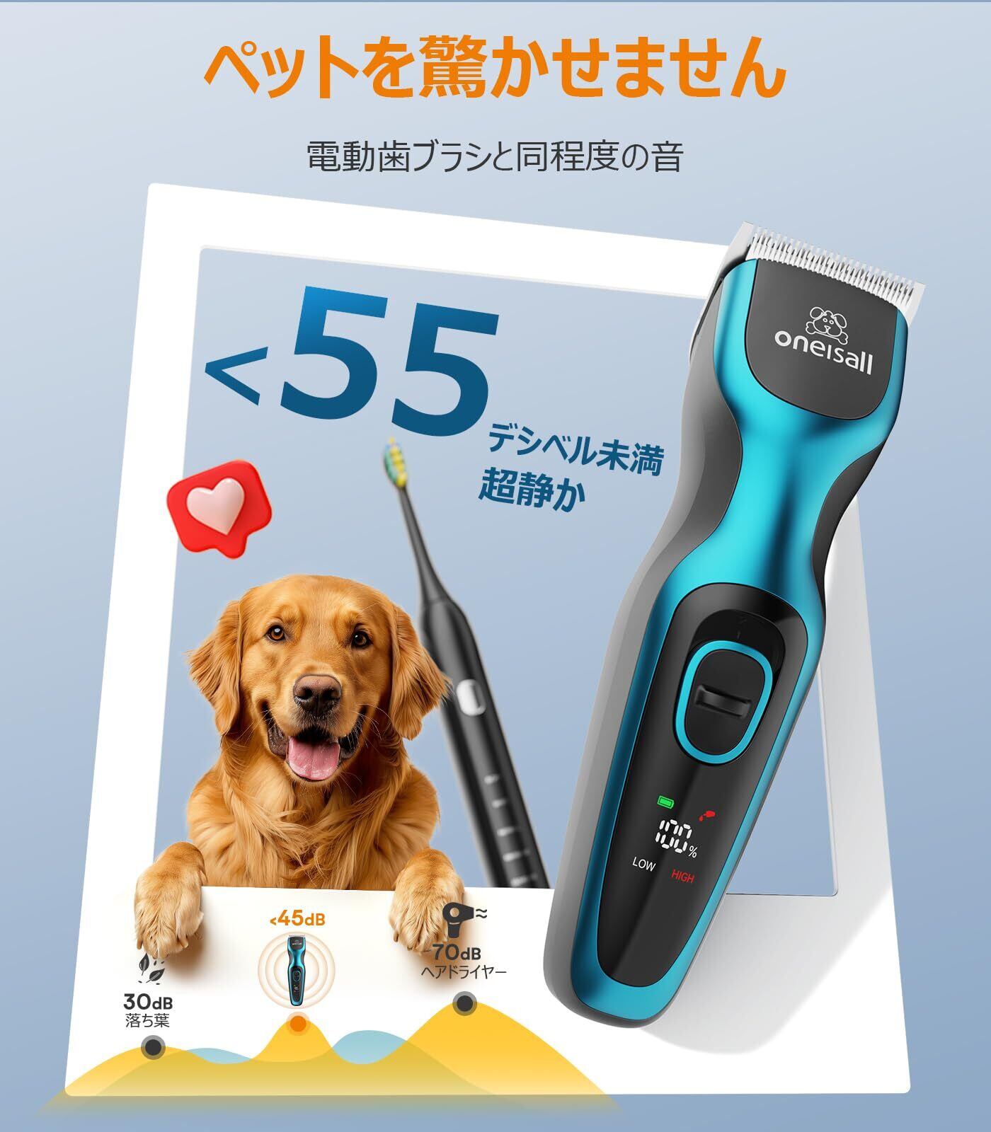 【全身カット対応】oneisall 犬 バリカン 猫 バリカン/ペット用 低騒音 クリッパー/LEDディスプレー付き/体 足 首周り 臀部/小型犬·大型犬·猫·対応/刈り高さ調整/充電式コードレス/カーリーな毛·絡まった毛·長い毛/モデルDTJ-001