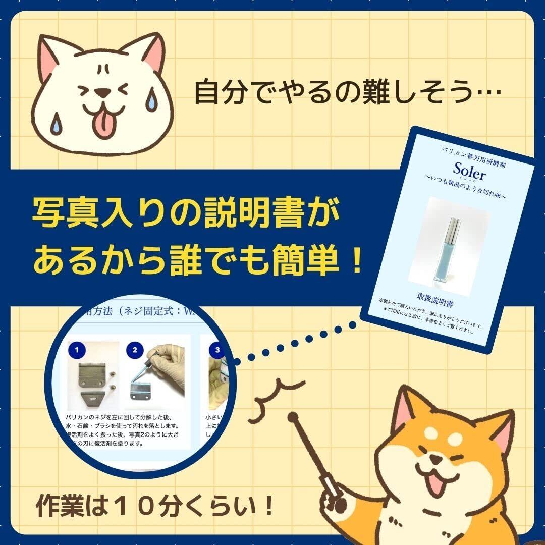 バリカン替刃用研磨剤【ソレール】 誰でも簡単セルフ研ぎ! わかりやすい写真入り説明書付き!バリカン クリッパー 替刃 研磨剤 研磨液 研ぎ液 研ぎ剤 磨き剤 磨き液 (10g入り)