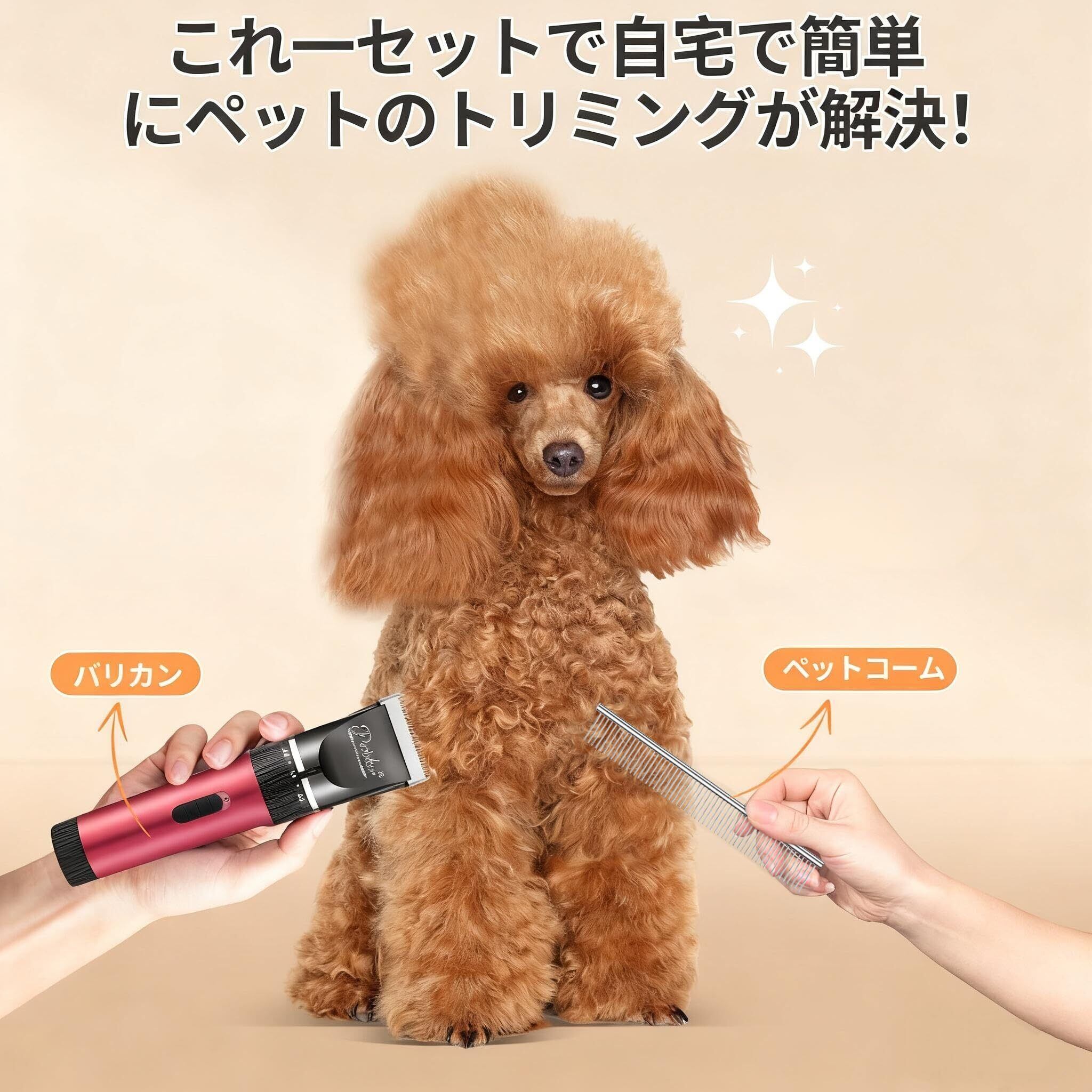 【パッケ一ジ内容】 Patekerペット用バリカン本体×1、Pateker上下兼用カーブシザー×1、スチールコーム×1、アタッチメント×4(3mm/6mm/9mm/12mm)、USB充電ケーブル×1、クリーニングブラシ×1、収納袋×1、日本語取扱説明書×1。