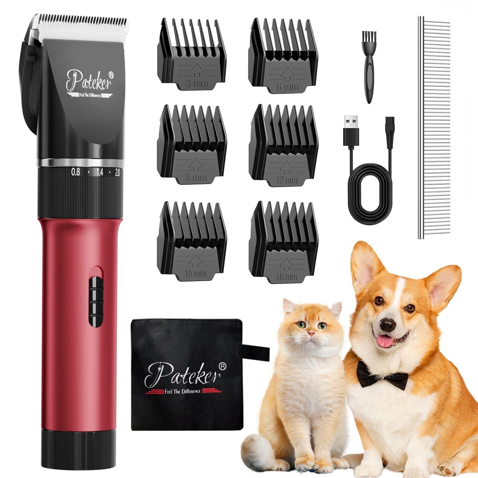Pateker® コードレス グルーミングバリカン ペットの全身の毛をプロの仕上がりに 調整可能なコームガイド ペットグルーミングセット | 小型犬~大型犬&猫対応 | 人間工学デザイン | 初心者向け日本語説明書付き