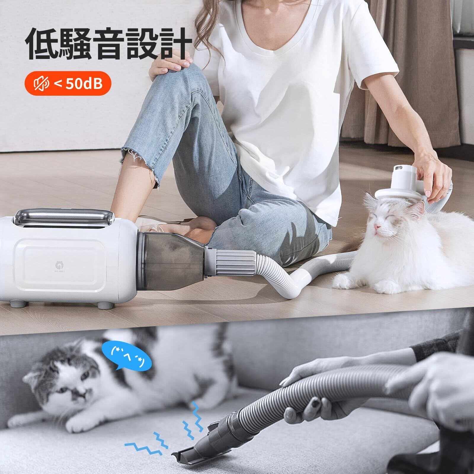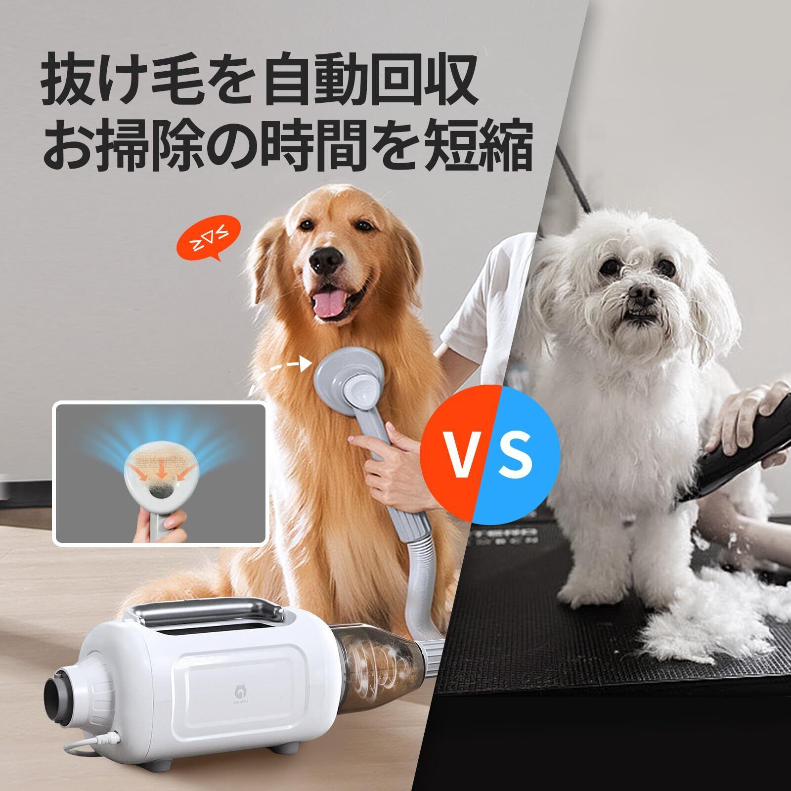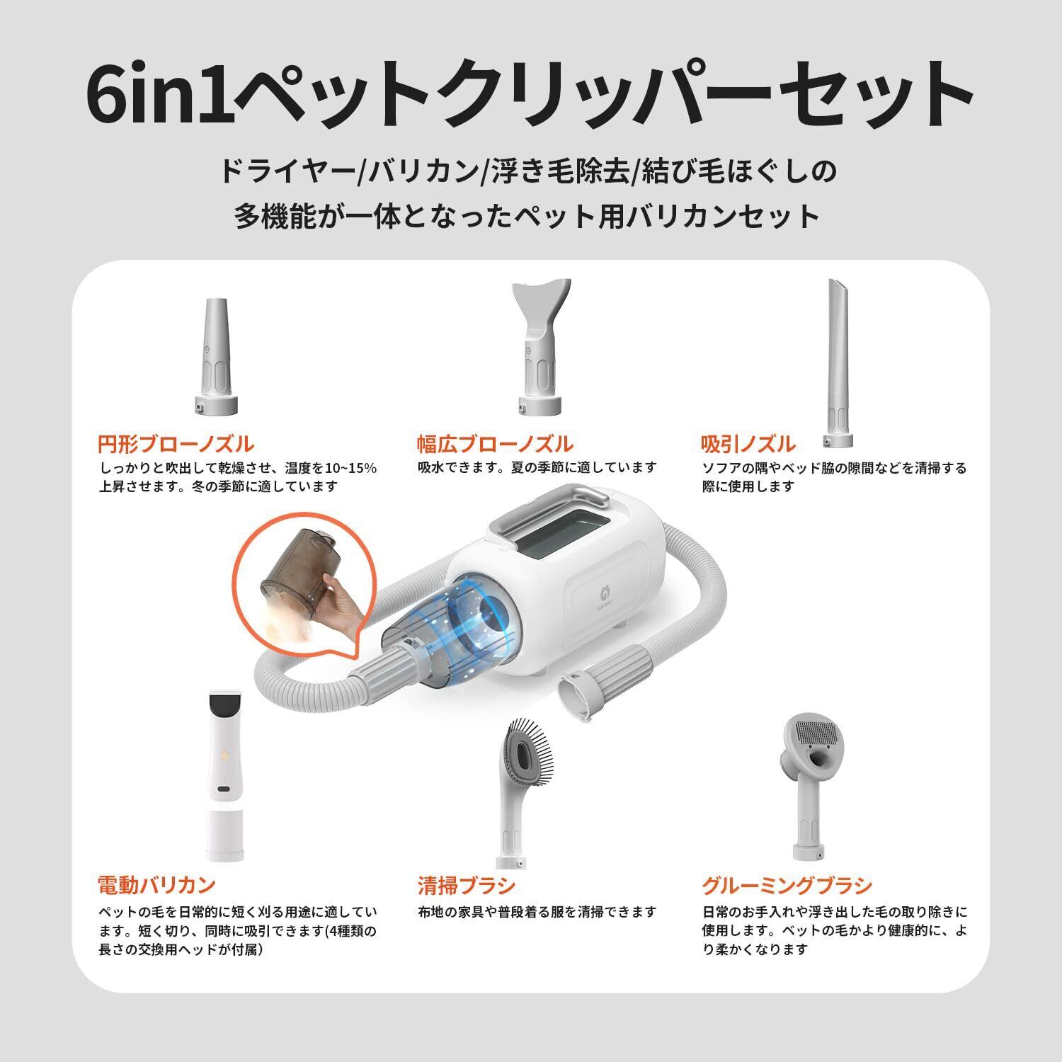 【ドライヤーと掃除機一体型】GULIGULI ペット用バリカンセット 6in1 犬用バリカン 犬 猫美容器ペットグルーミングセット13300Pa 超強力吸引 ドライヤー 風力の5段階调整可能 恒温保護 2段階の吸引力 多機能 抜け毛を自動吸引 多機能掃除機 Shark