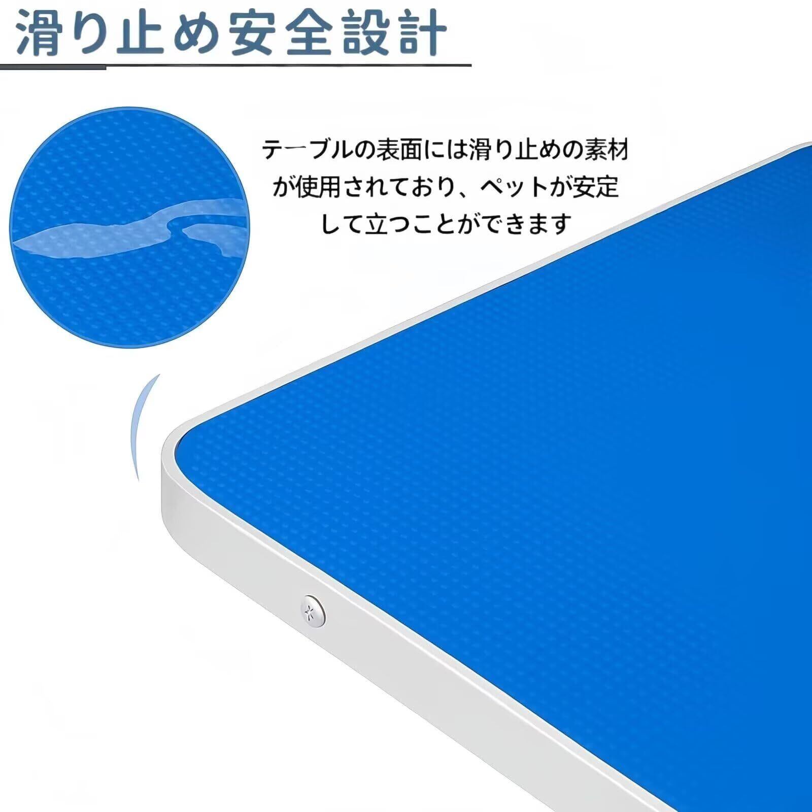 【滑り止め安全設計】テーブルの表面には滑り止めの素材が使用されており、ペットが安定して立つことができます。三角固定で、柱と天板をより強固に連結することがあります。不安定な動きや事故を防ぐための安全性が確保されています。