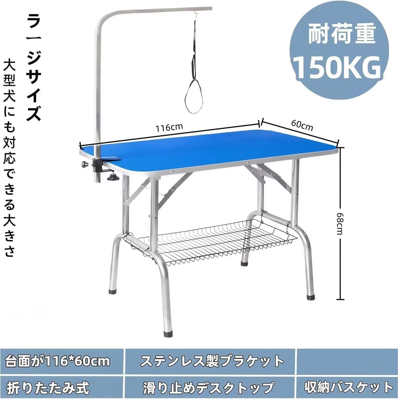 TUIYIDUO トリミング台 トリミングテーブル 折りたたみ 大型犬 グルーミングテーブル 台面 耐荷重150kg 滑り止め リミングペット用 シャンプーカット ブロー ブラッシング 爪切り バリカン トリミングテーブル 自宅用 業務用 (ブルー,116*60*68.8cm)