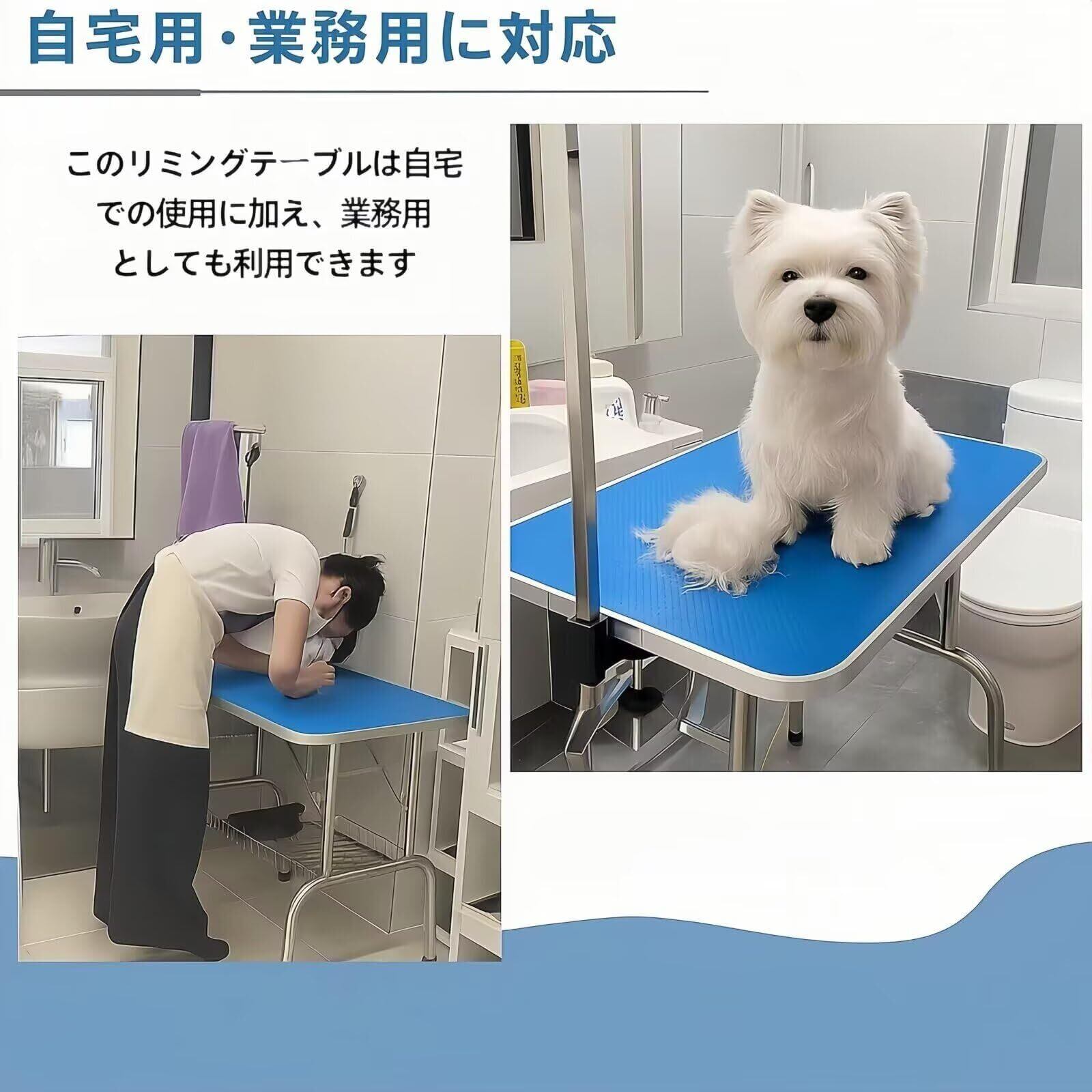 【自宅用・業務用に対応】このリミングテーブルは自宅での使用に加え、業務用としても利用できます。ペットサロンやトリミング店などでプロフェッショナルなトリミング作業に適しています。