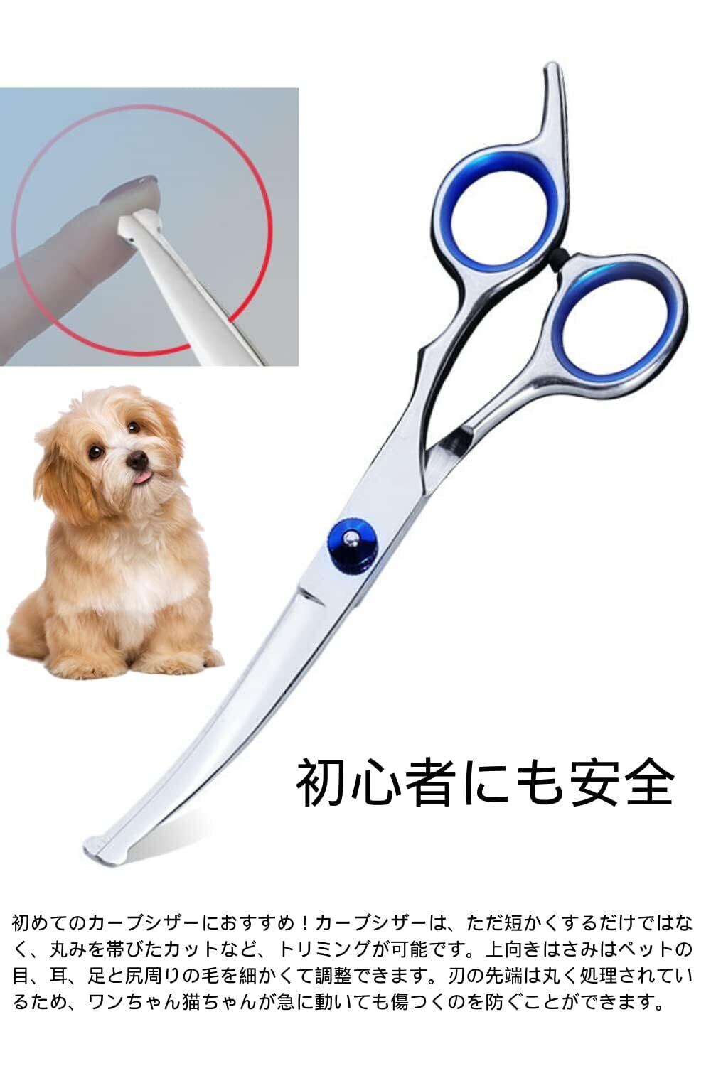 【初心者も安心】初めての方におすすめのカーブシザー!短くするだけでなく、カーブトリミングもできるカーブシザー。上向きのハサミなので、ペットの目・耳・足・おしり周りの毛を細かく調整できます。刃の前面は丸みを帯びた仕上げになっているので、愛犬・愛猫が急に動いても傷がつきません。