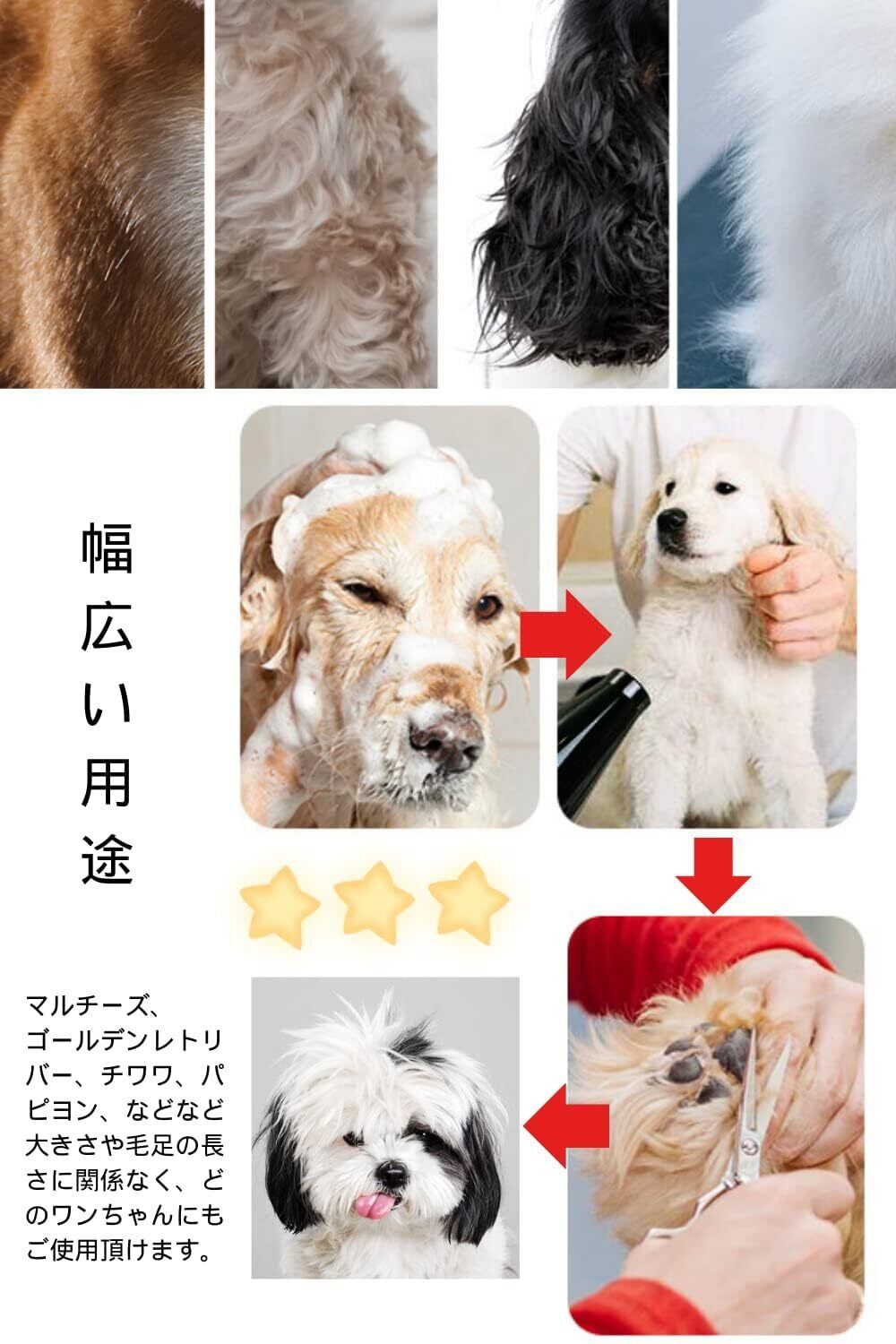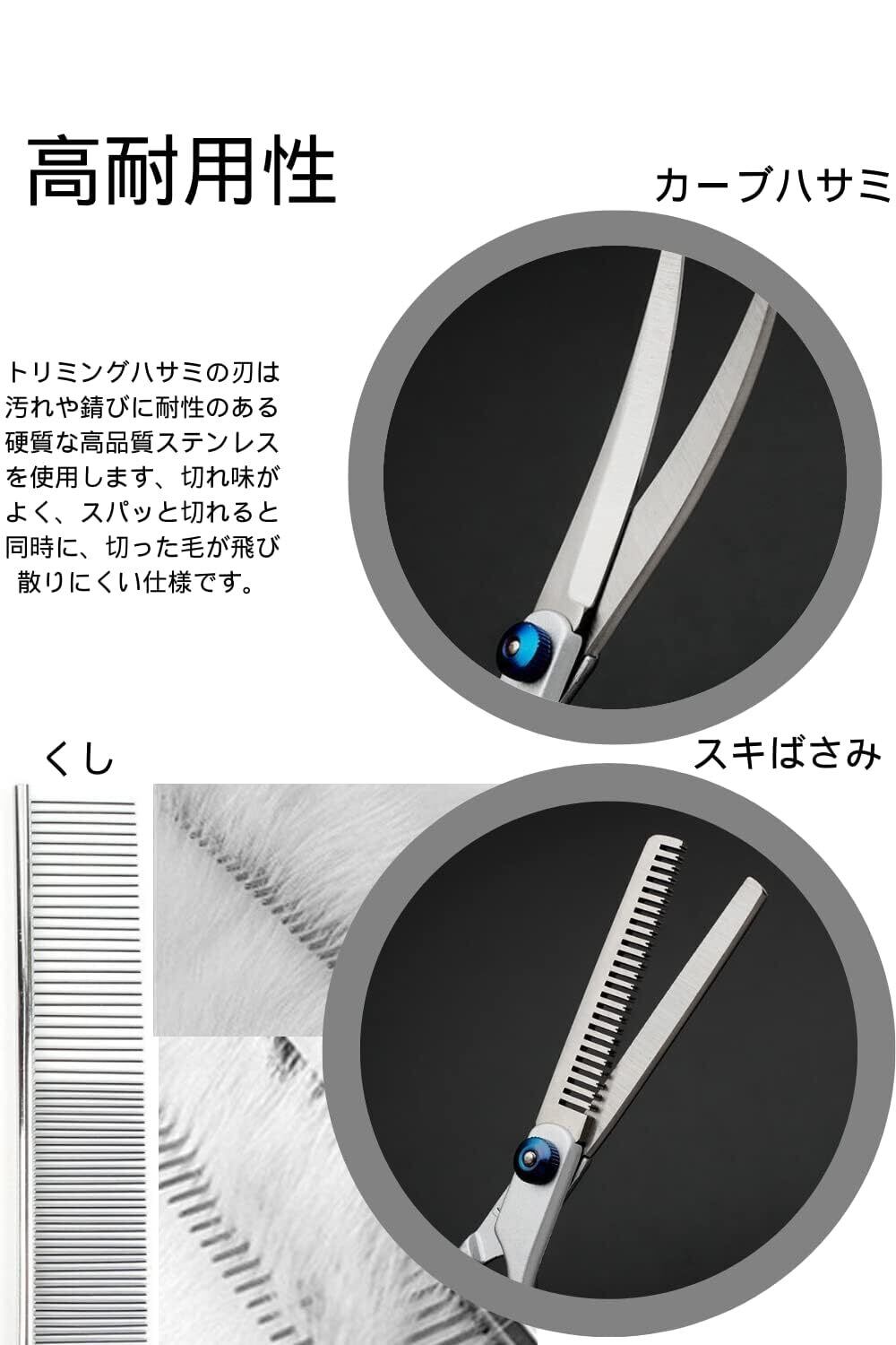 【高耐久性】トリミングハサミの刃は汚れやサビに強い硬くて高品質なステンレス製で、切っても飛び散らないほどの切れ味です。チーズ、ゴールデンレトリバー、チワワ、パイナップルなど、犬の大きさや毛の長さに関係なく、どんな種類の犬でも使用できます。