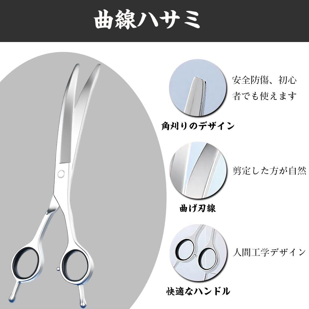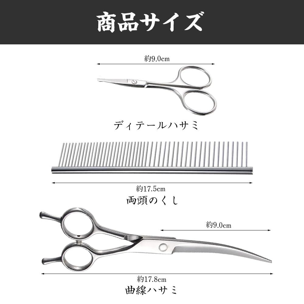 YBGGJO ペット用ハサミ 3点セット カーブシザー エルゴノミック 犬 猫用グルーミングはさみ トリミングシザー ミニハサミ 少し曲がった刃 ペット はさみ