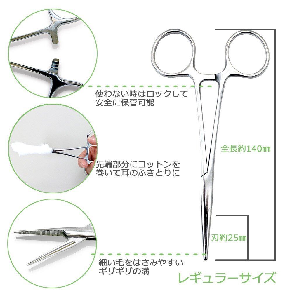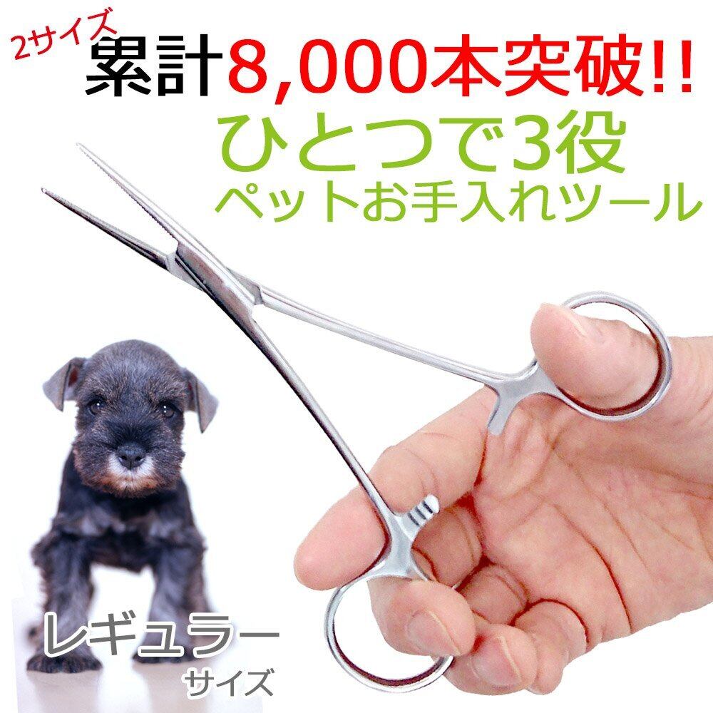 プチリュバン かんし 犬 猫 レギュラーサイズ フォーセップ ピンセット ペット 長毛種 毛抜き 耳毛抜き ステンレス 鉗子 ロック機能付き ペットのお手入れ