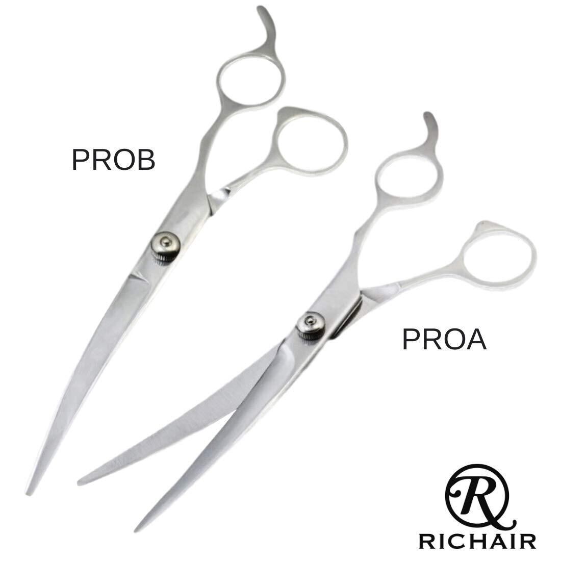 RICHAIR プロ仕様 ペット用 トリミング ハサミ カーブシザー 顔周り 足回り 目元 丸みを出しやすいカーブ型の刃 トリマー 犬 猫 ペット用 全長19cm (下カーブハサミ)