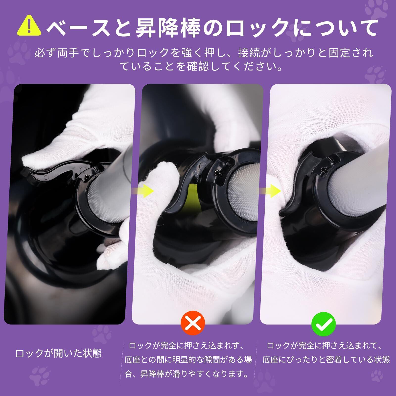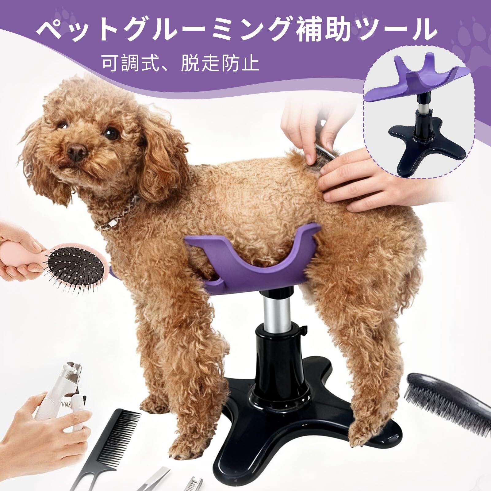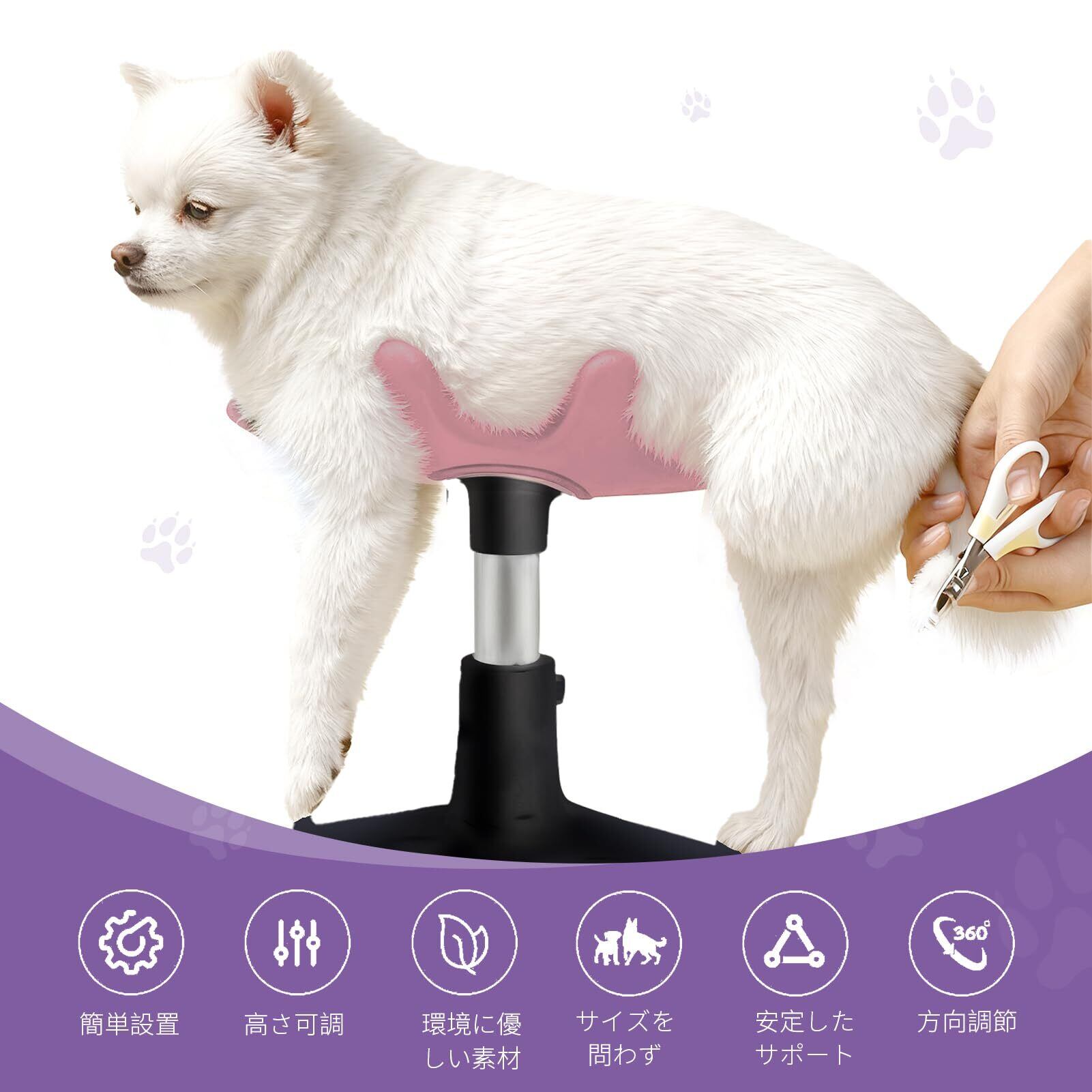 安定性重視: 5本足の安定したベース設計で、グルーミング中のペットの動きにも対応します