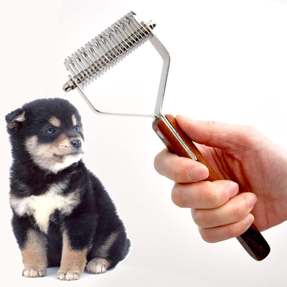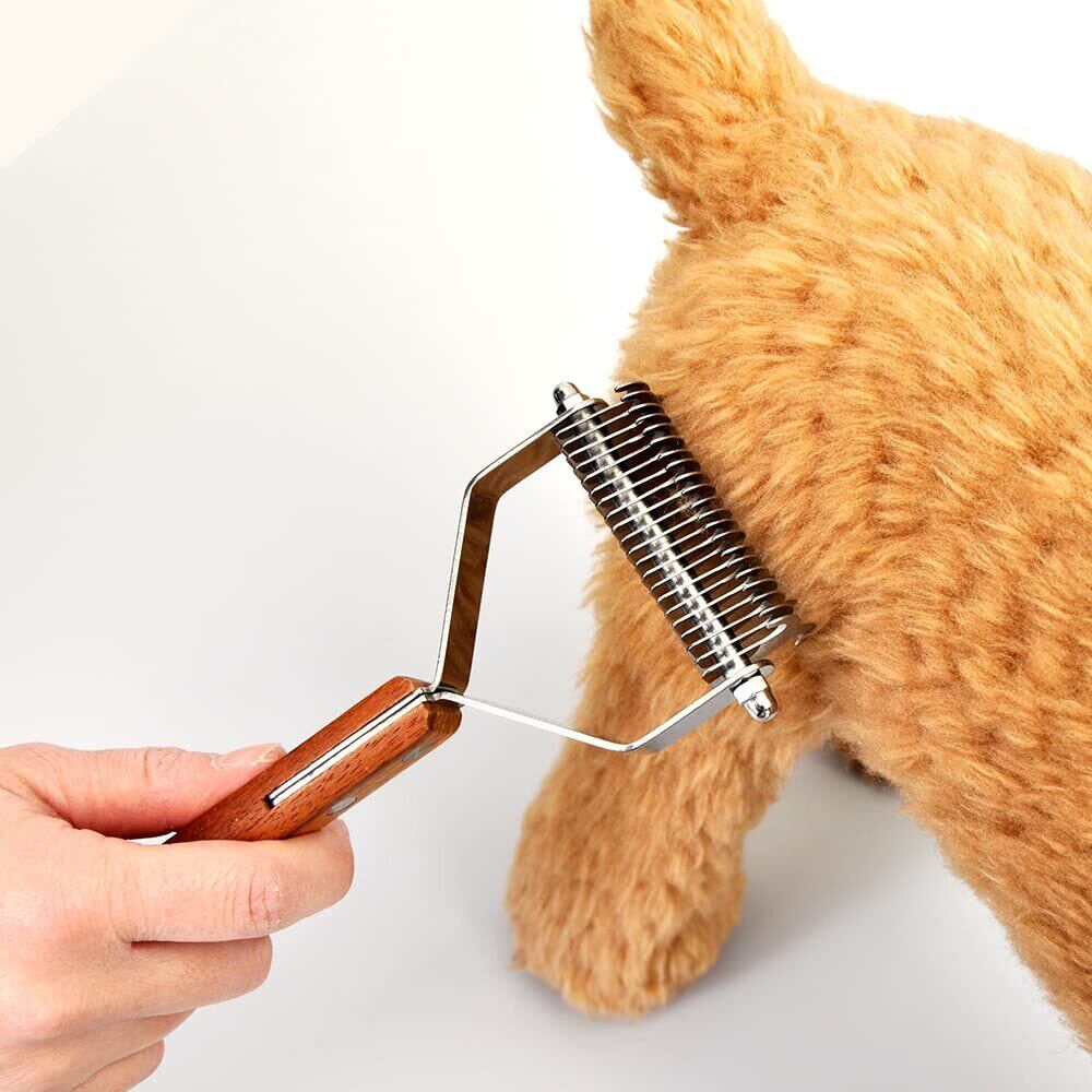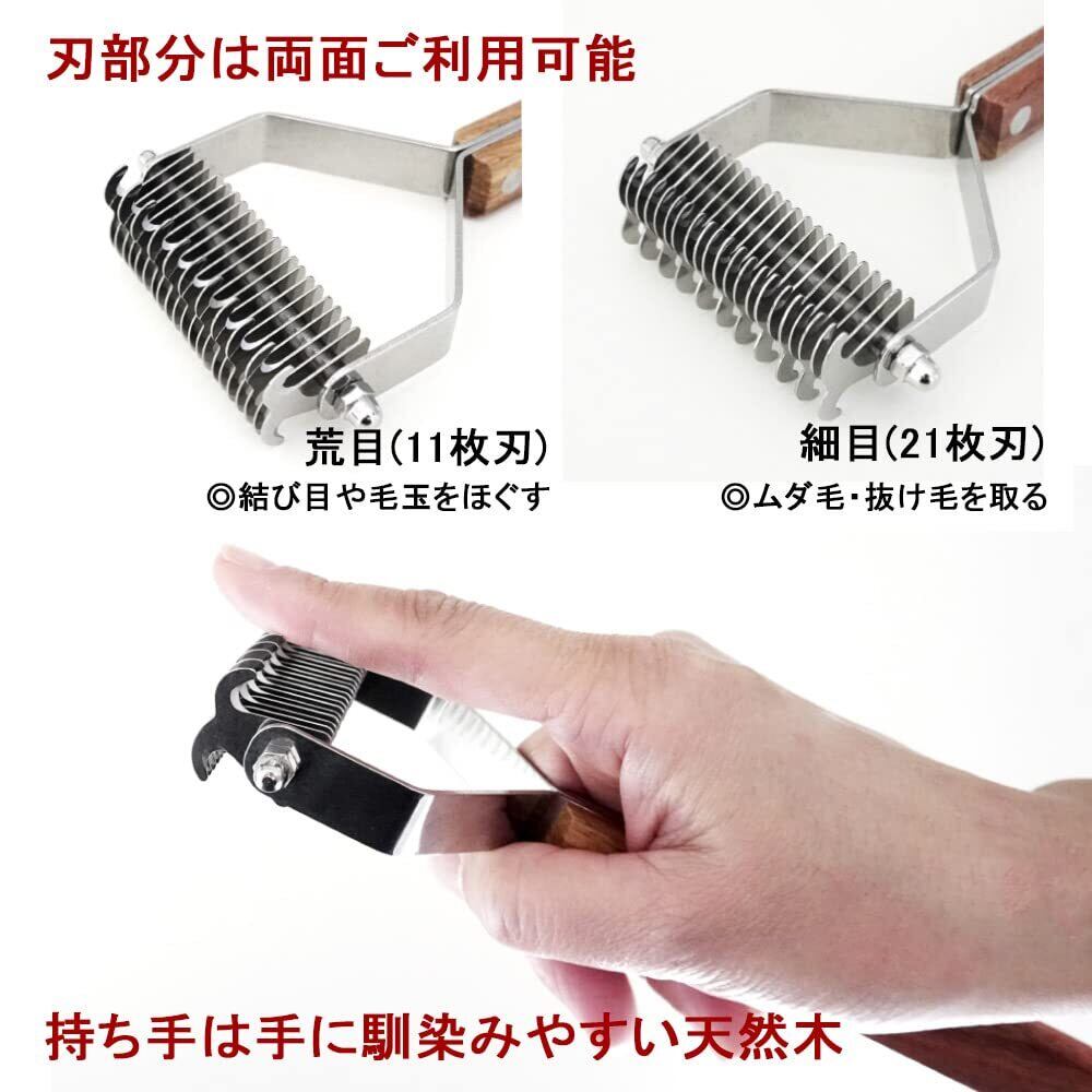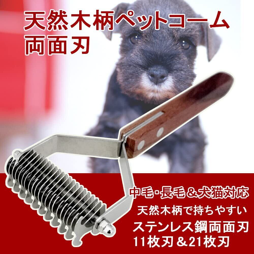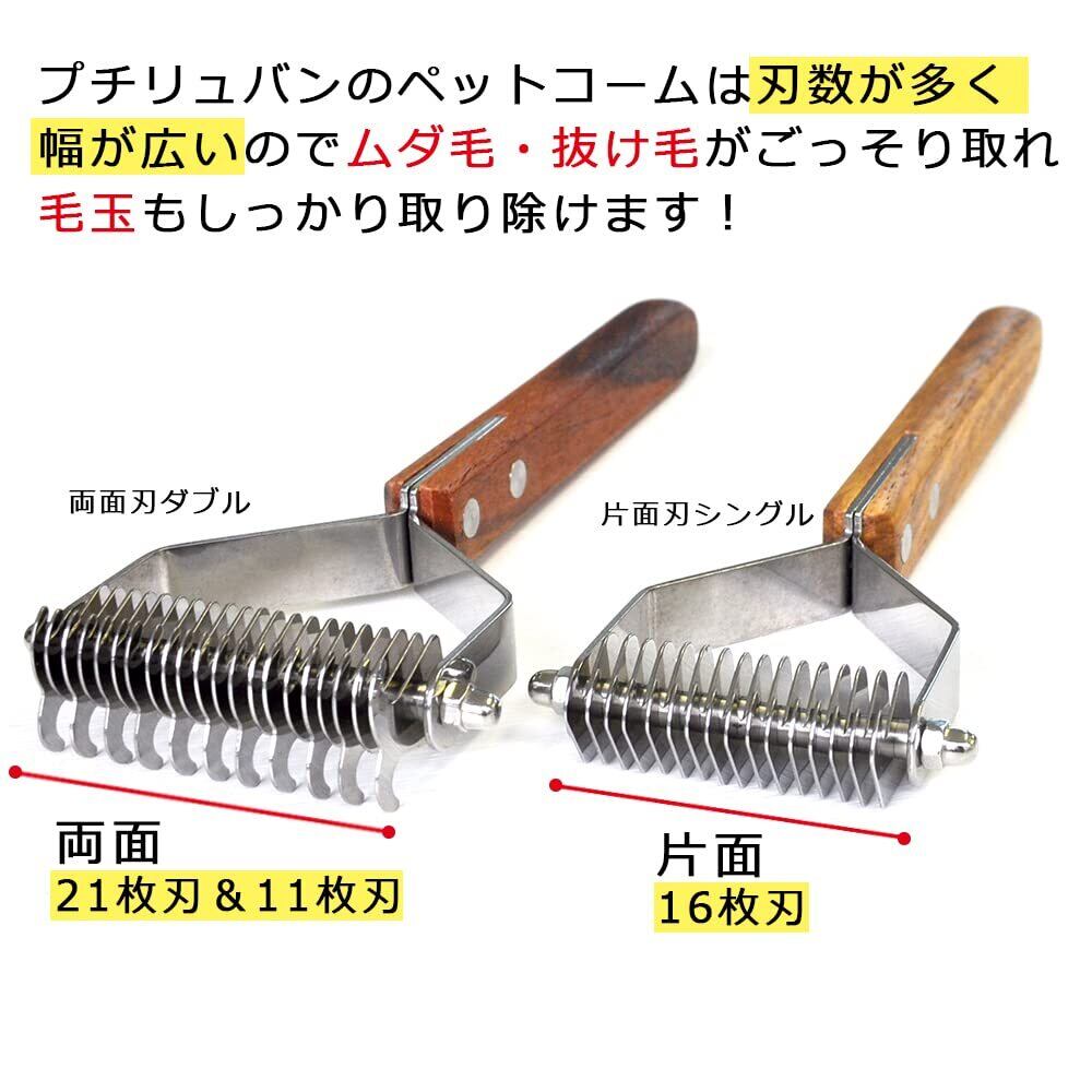 プチリュバン スリッカーブラシ 犬 猫 ペット 毛玉取り ムダ毛取り 両面 21枚刃&11枚刃 天然木 小型犬 中型犬 大型犬 ペットブラシ ペットコーム ステンレス鋼 抜け毛