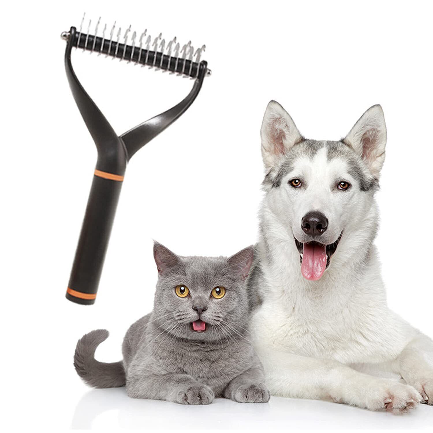 RICISUNG 犬/猫 毛玉取り ペットコーム 美容 毛玉&ムダ毛取りコーム ステンレス 犬/猫ブラシ 抜け毛 厚い髪結び除去 犬用 猫用 長毛短毛兼用 (両面)