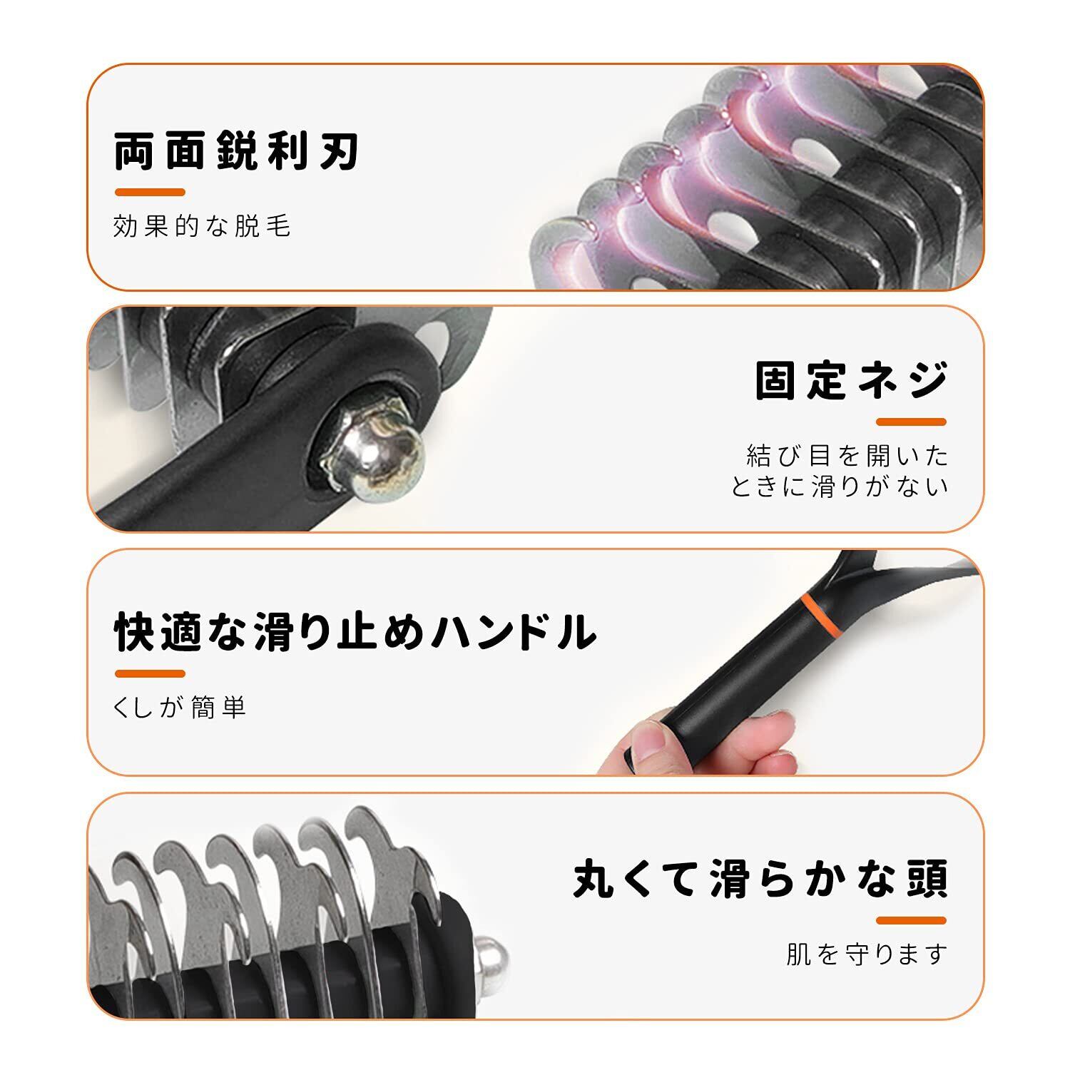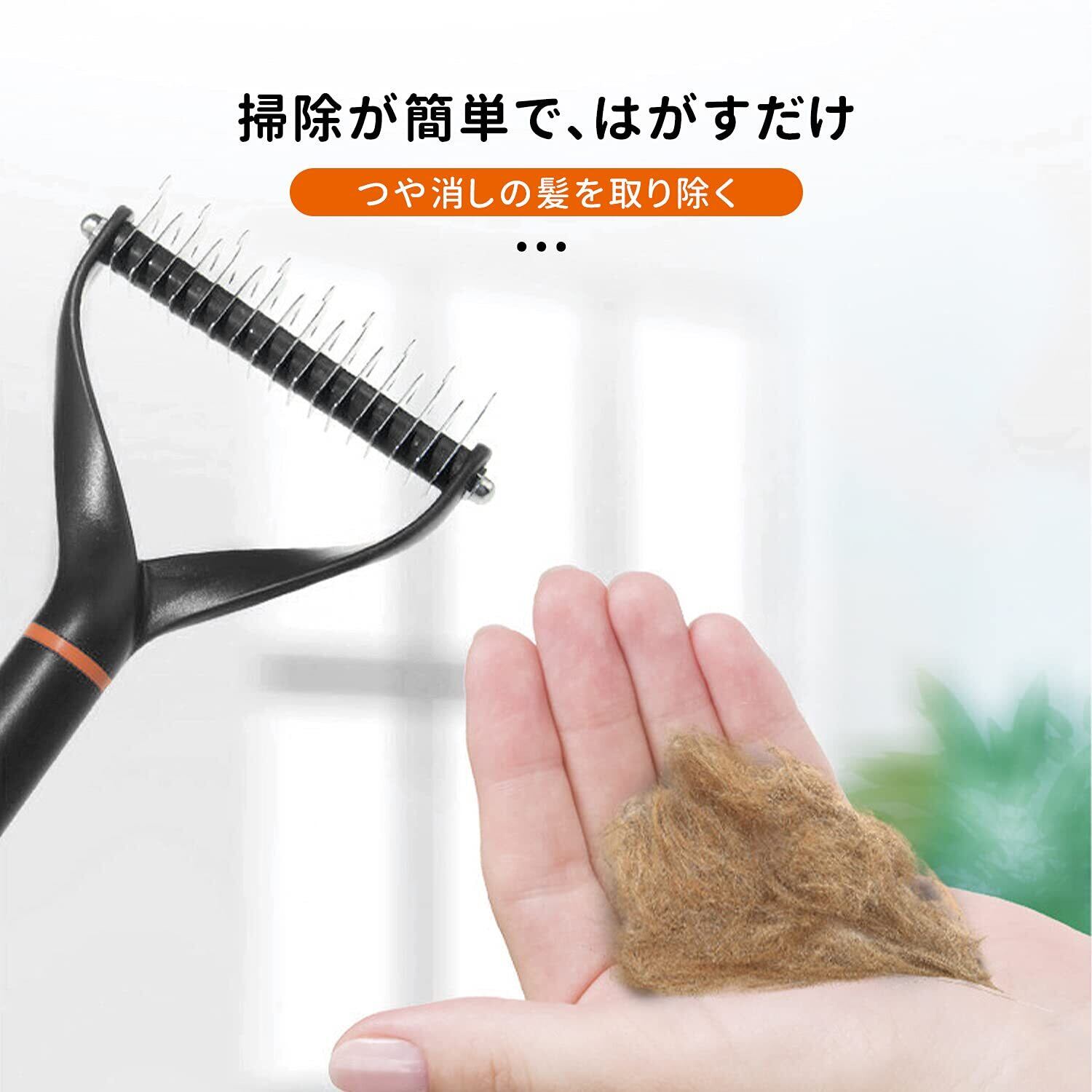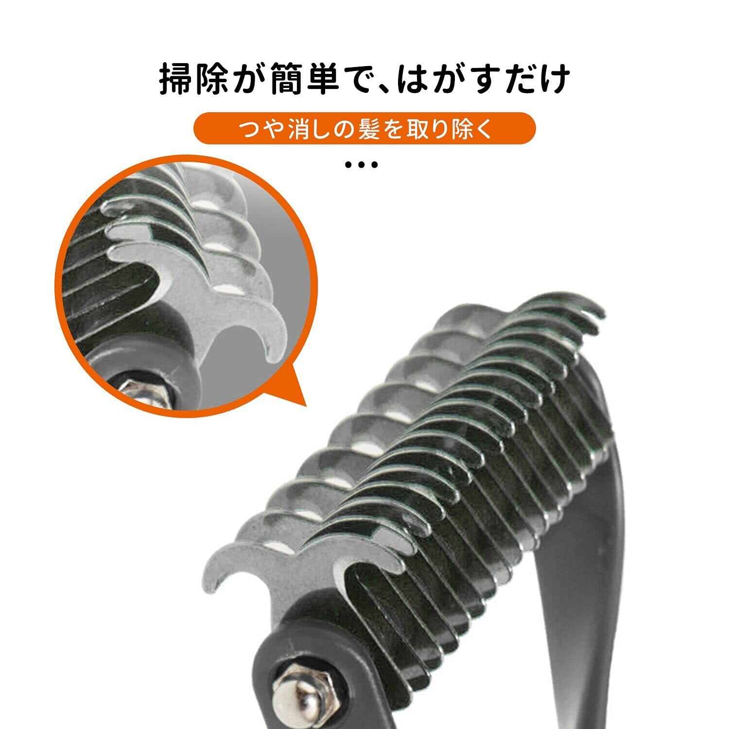 ステンレス製両面歯デザイン:12本歯のサイドハサミでペットを結び、23本歯のサイドの細い髪で脱毛します。ペットの髪をふわふわにします