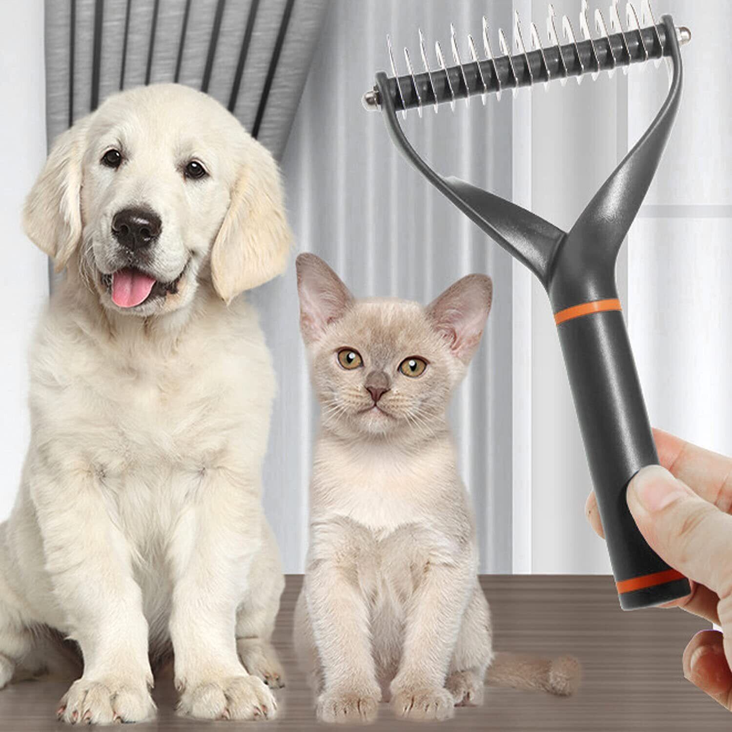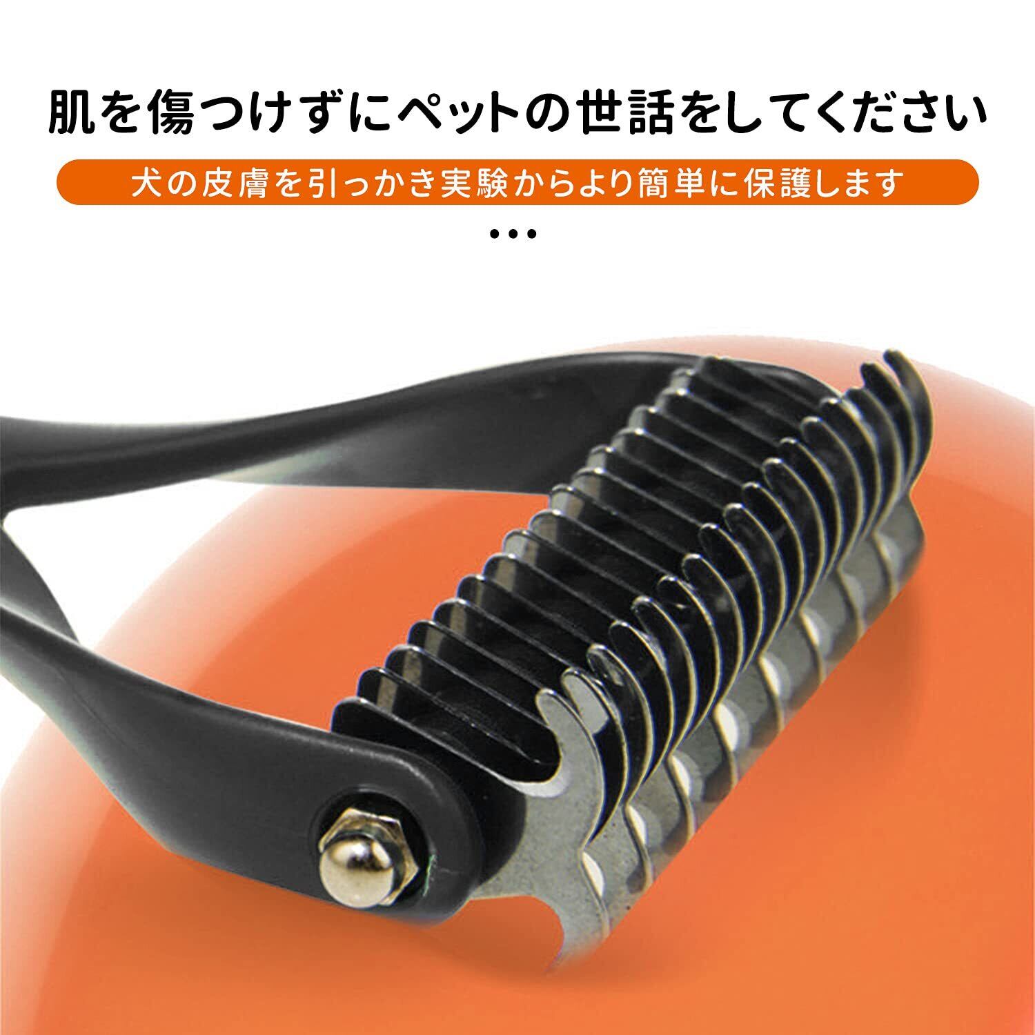 安全歯:ヘアボールリムーバーの先端は丸く設計されており、湾曲した傷防止両面ブレードデザイン、コーミング作業をスムーズに進めるために、ペットの肌を傷つけません。