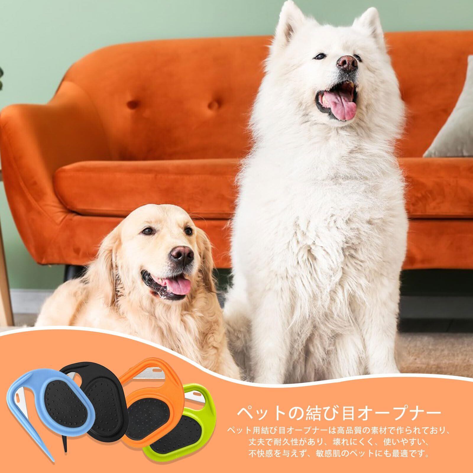 【パッケージ】ペット結び櫛4個セット。ブルー+オレンジ+ブラック+グリーン。 【結び目除去】この犬用コームはペットの体の結び目を解きほぐすことができ、体の硬い結び目を切ることができます。 毛の問題に別れを告げて、ペットがより快適に感じさせ、身だしなみを整えましょう。 【耐久性】このコームは滑り止め粒子を備えたTPRハンドルを採用し、人間工学に基づいて設計されており、感触が良く、操作が簡単です。 ステンレス刃を使用しているので、丈夫で耐久性があり、錆びにくく、折れにくく、長くお使いいただけます。 【多機能】このペット結び櫛は結び目を開くだけでなく、マッサージや脱毛ツールとしても使用できます。 【ユニバーサル】このコームはほとんどの猫、犬、その他のペットに適しています。 ペットの飼い主にとって必須のペットグルーミングツールです。 ペットを飼っているお友達へのプレゼントにも最適です。