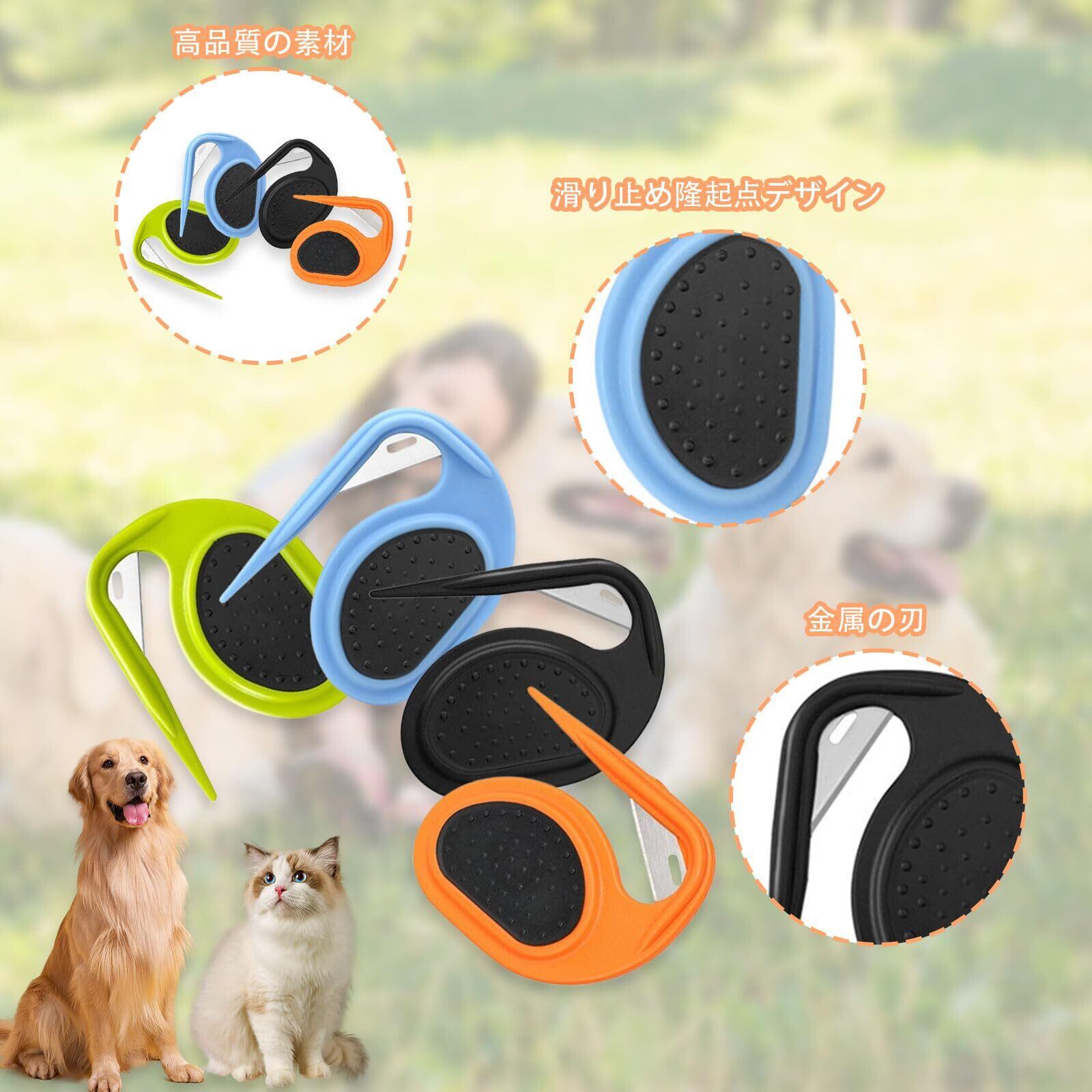 ペット コーム 4個セット 結び櫛 ペット結び目コーム 犬 猫 毛玉取り くし バリカン 痛くない 多機能 マッサージコーム ムダ毛取りコーム 脱毛コーム 刃付き ペット用品 (4個セット)